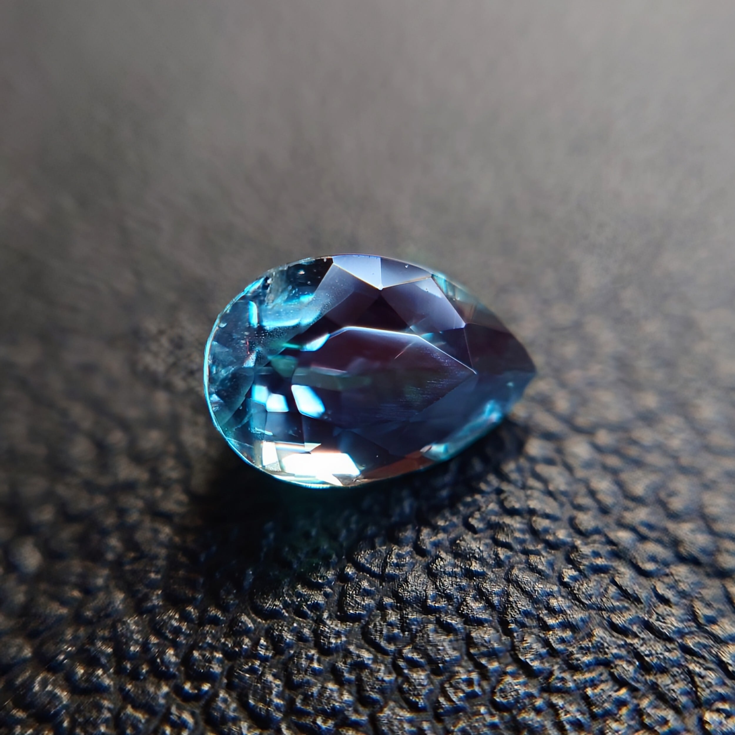 透明度も高く、内部には天然石特有のインクルージョンがわずかに見られるものの、全体としてクリアで美しい印象。