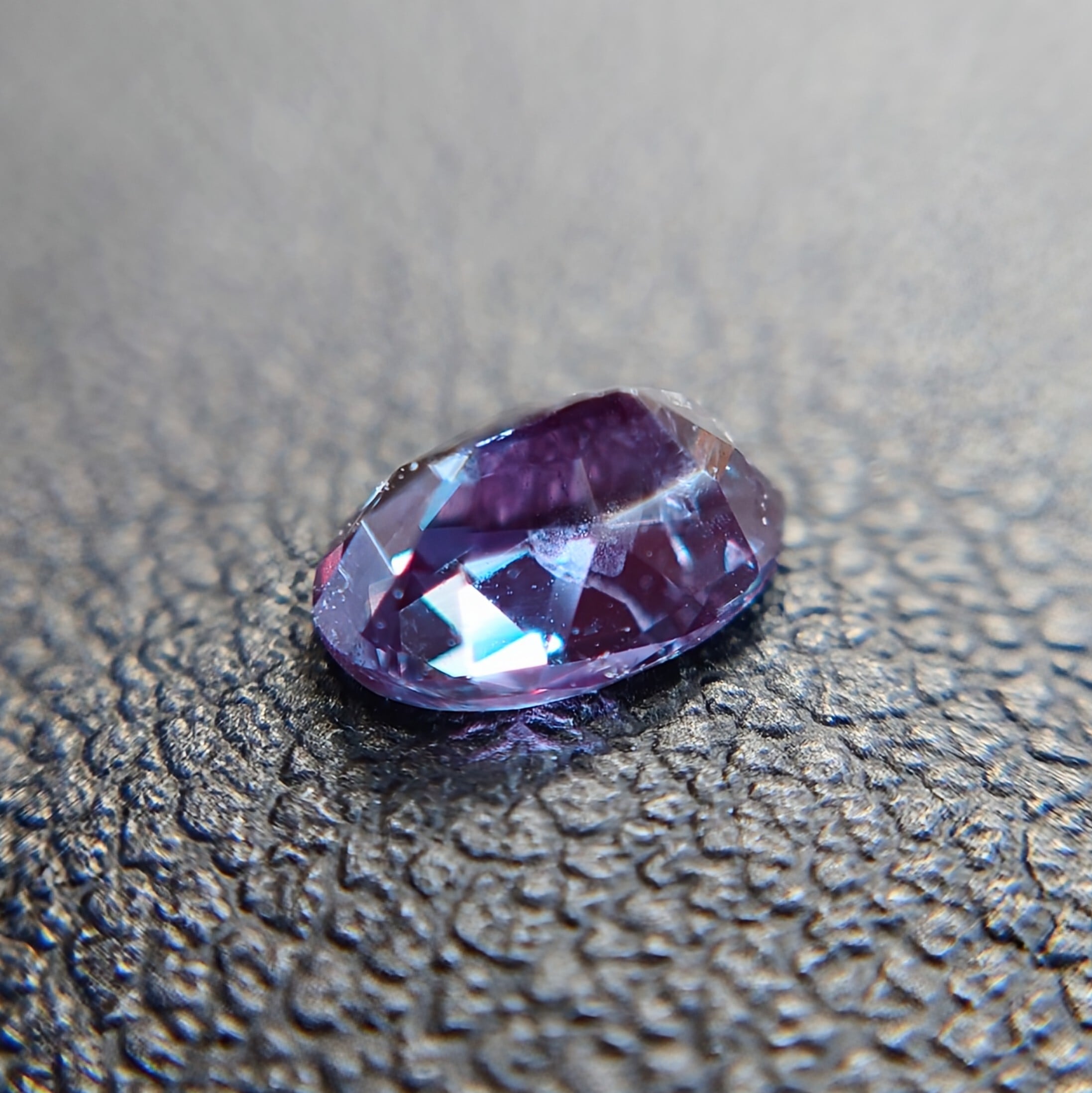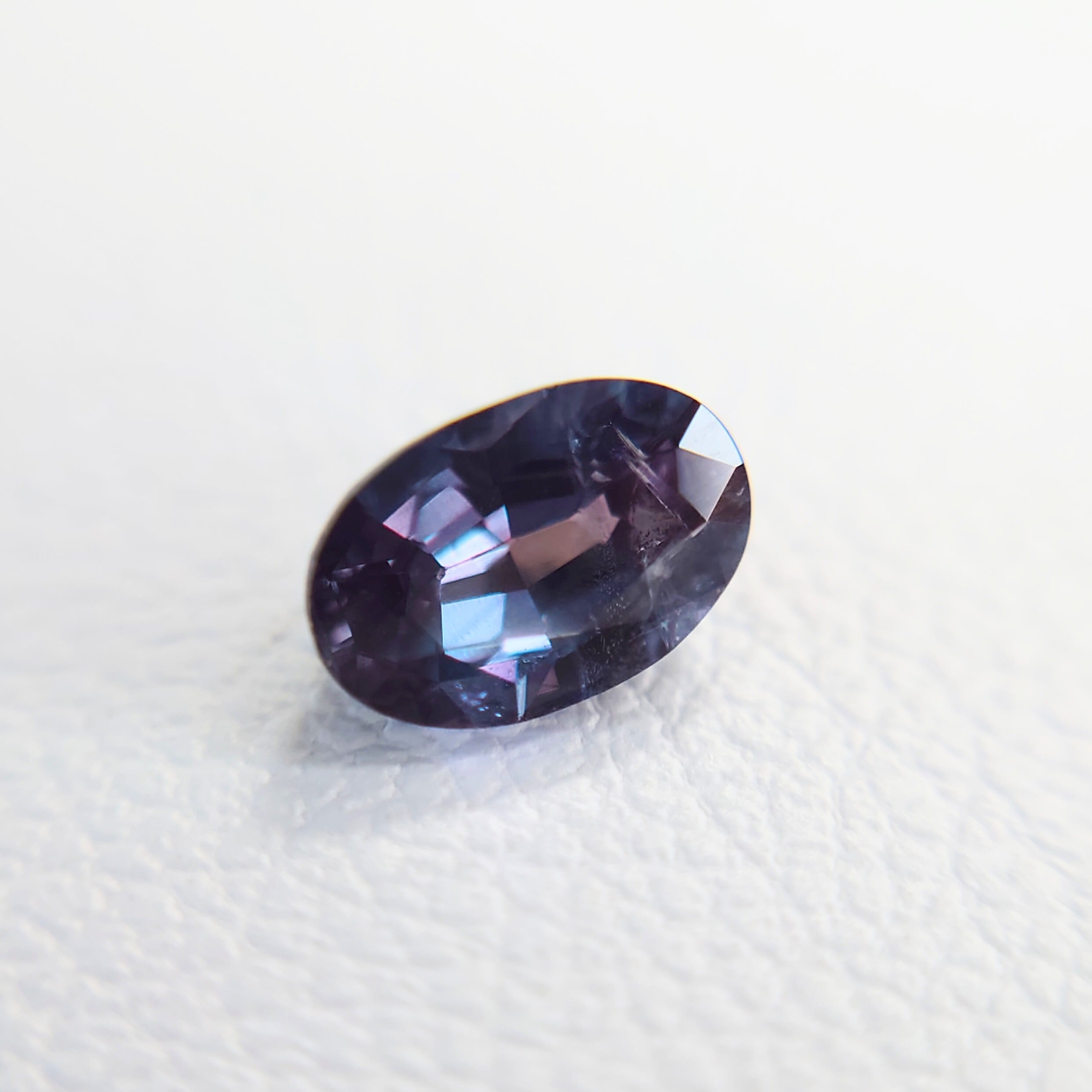 白熱灯下では艶やかなパープルへと移ろう、その劇的な変化は、まさに“宝石の魔法”と称されるにふさわしい美しさ。