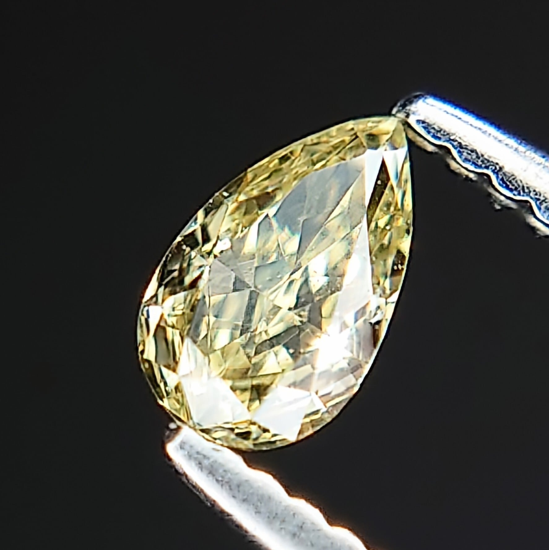 ペアシェイプカットが施されたことで、色の濃淡とテリのコントラストが美しく引き立ち、0.100ctというサイズながらも確かな存在感を感じさせます。