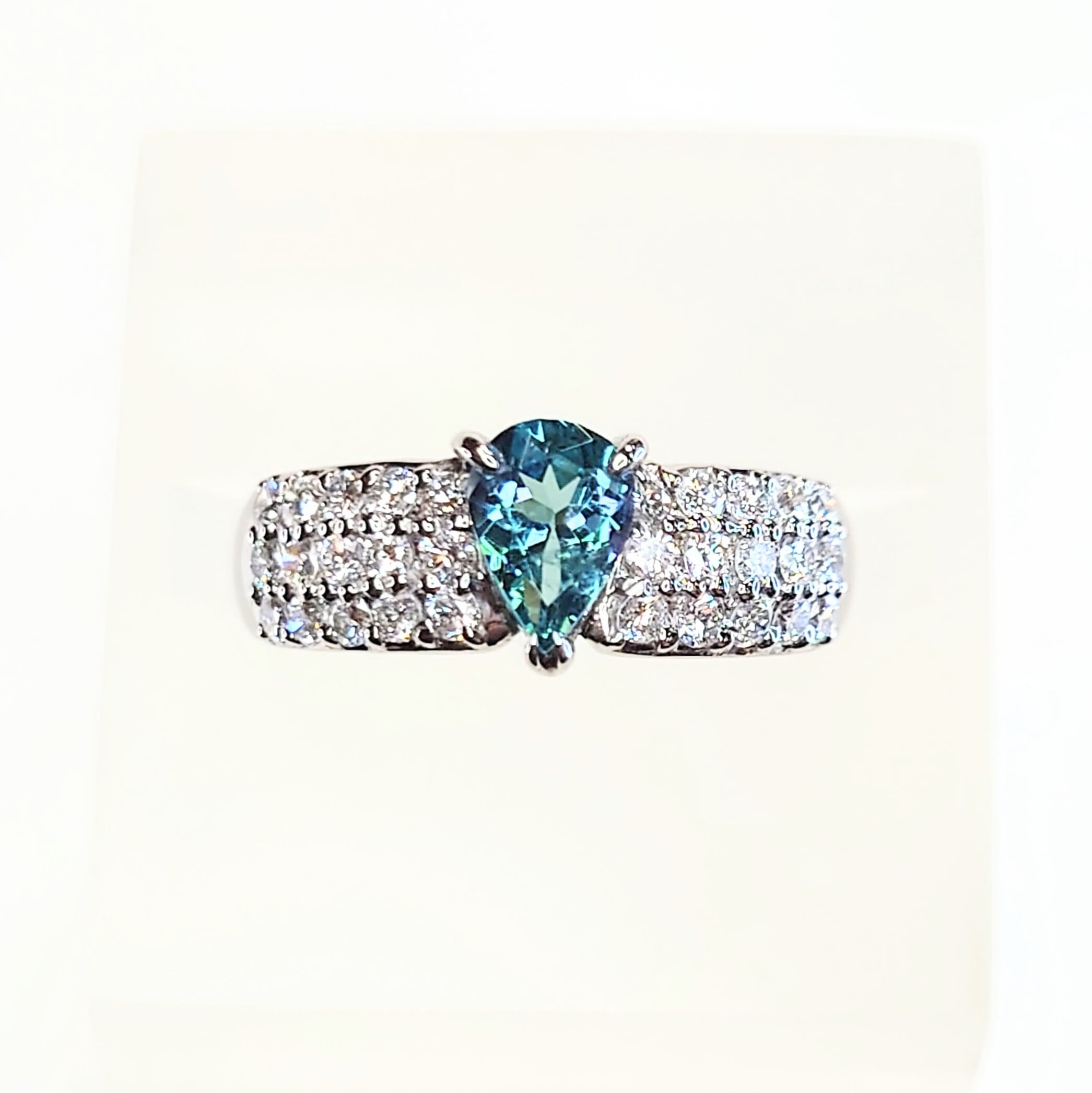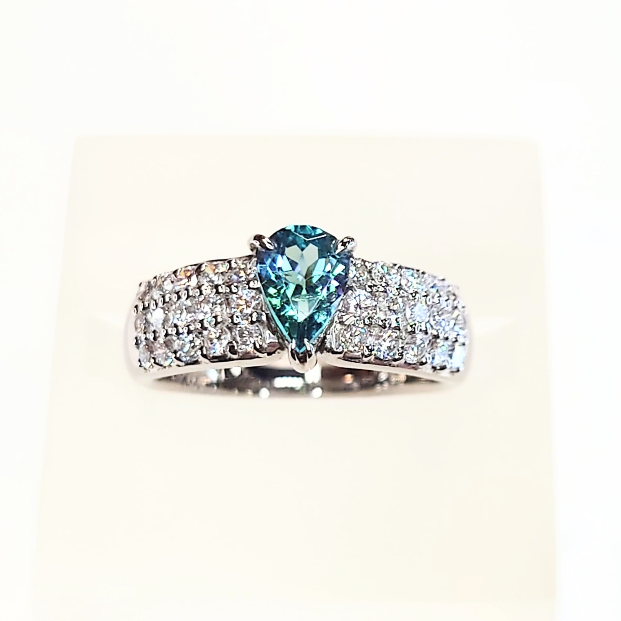 クロム(Cr)・鉄(Fe)・バナジウム(V)を含有することにより生まれる、ブルーとグリーンが溶け合う独特の色彩は、角度や光の加減によって繊細に表情を変え、まるで深い海の奥行きを覗き込むかのような幻想的な美しさを放ちます。
