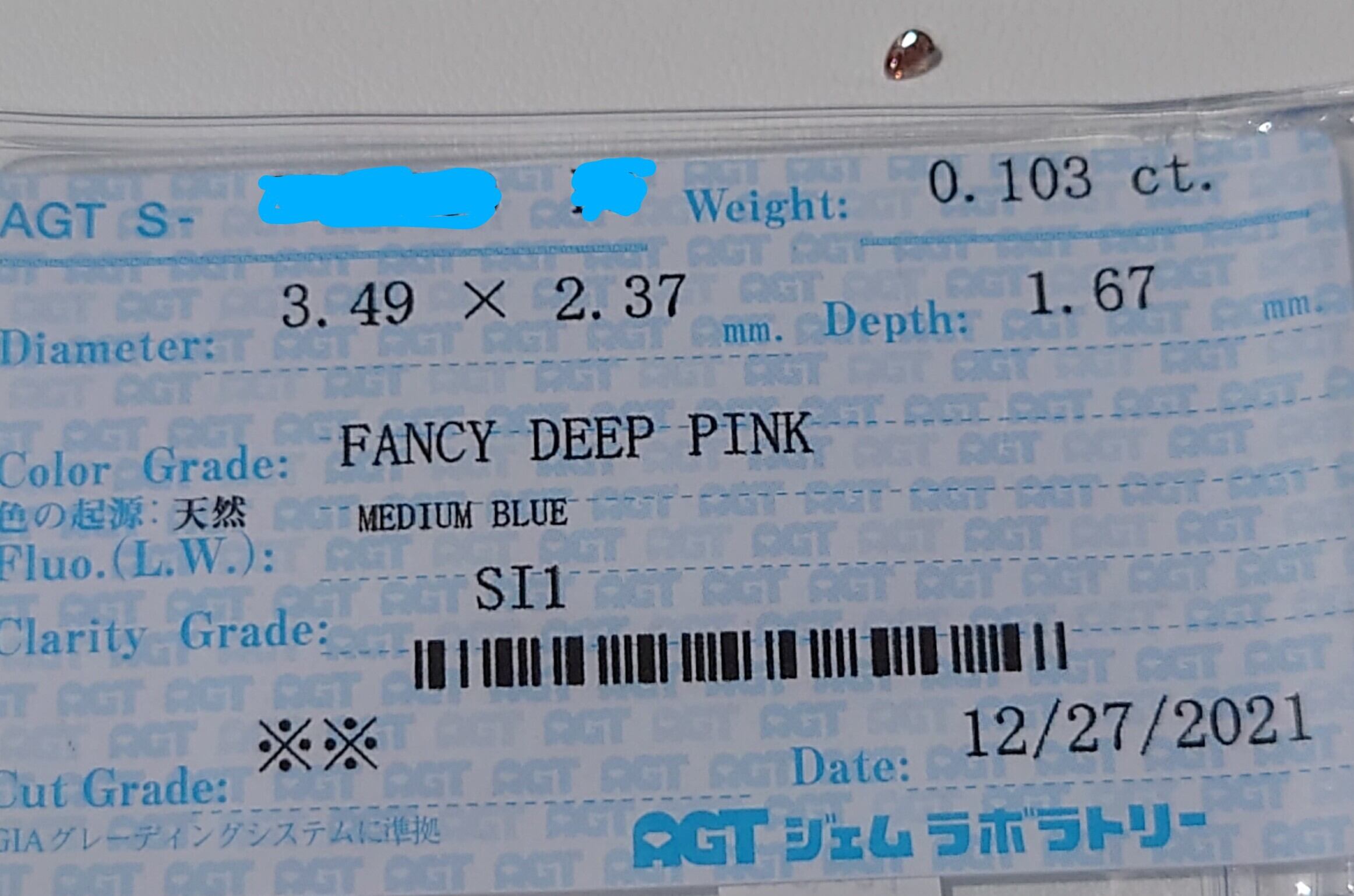 製品化しました☆ 天然ピンクダイヤモンド FANCY DEEP PINK 0.103ct ルース☆