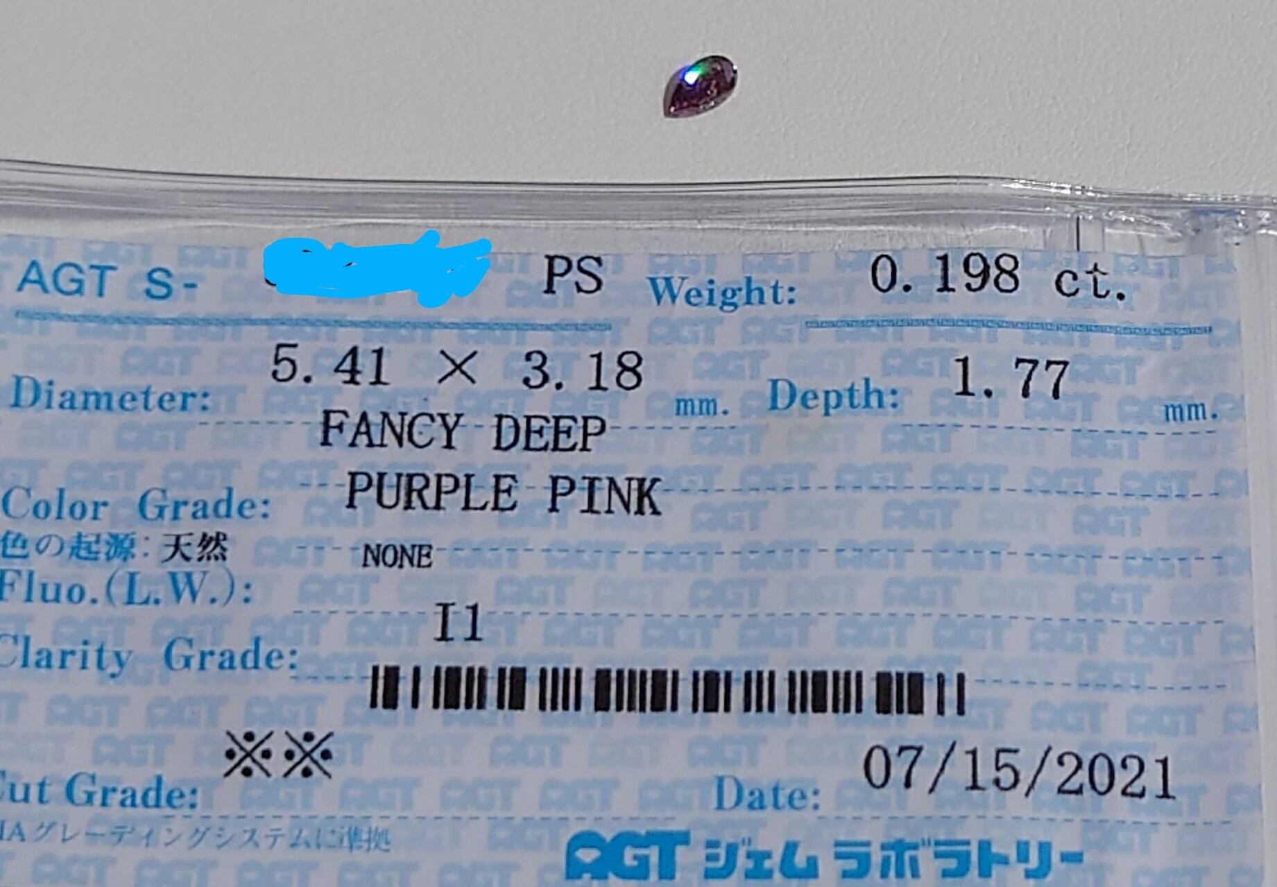 天然ピンクダイヤモンド0.198ct FANCY DEEP PURPLE PINK ルース☆
