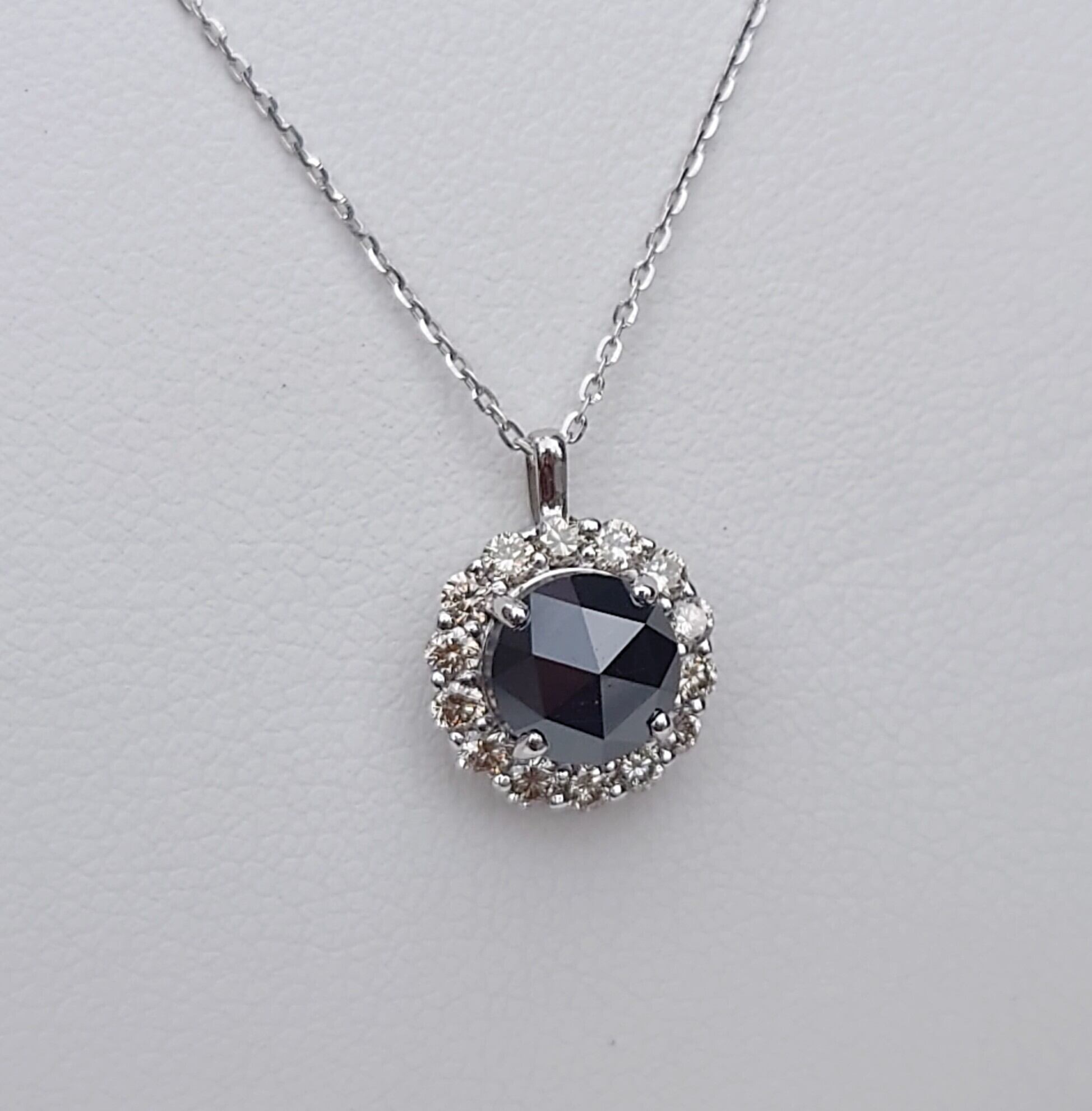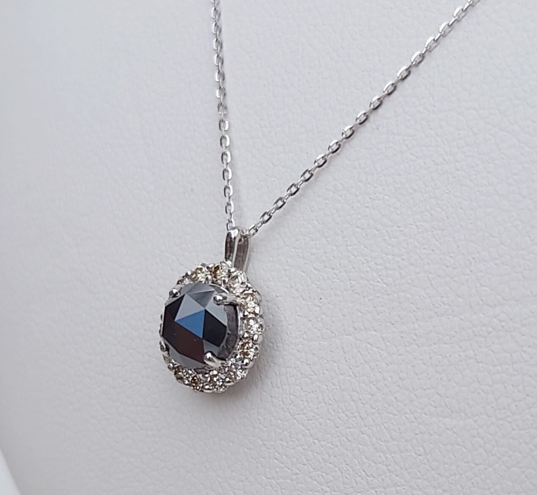 18WG天然ブラックダイヤモンド1.00ct ペンダントネックレス☆