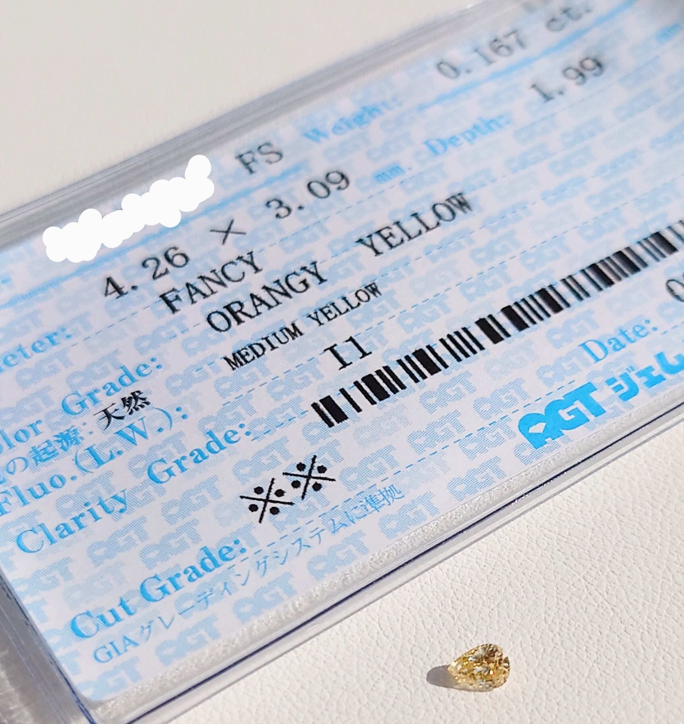 ファンシーオレンジイエローが0.1ctUPでこのお値段☆