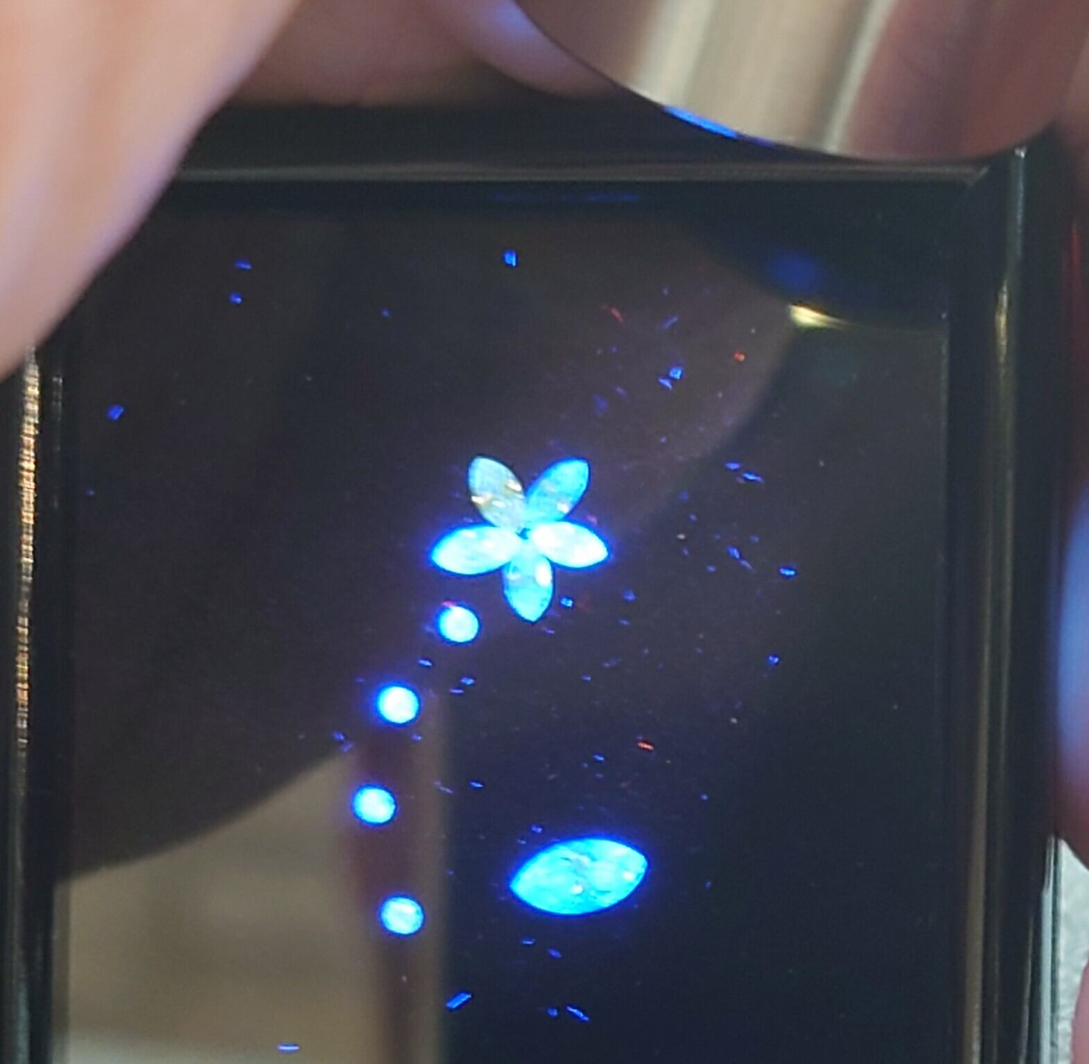 天然ダイヤモンドで蛍光反応するルースのみでセットにしました☆