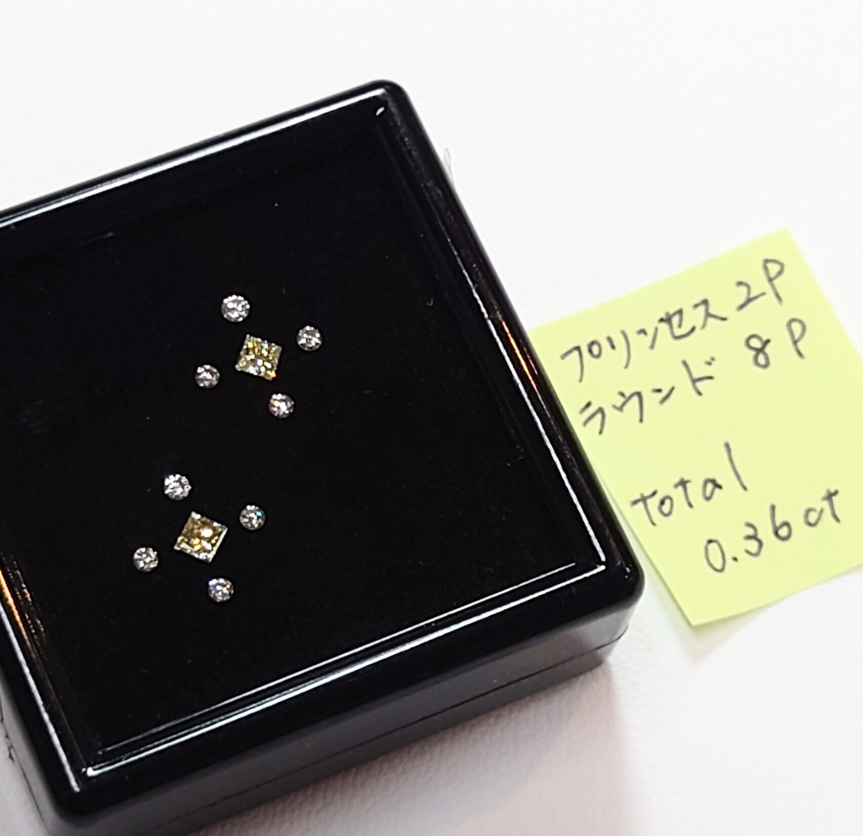 天然ダイヤモンド 蛍光ルースセット プリンセスカット2P ラウンド8P☆