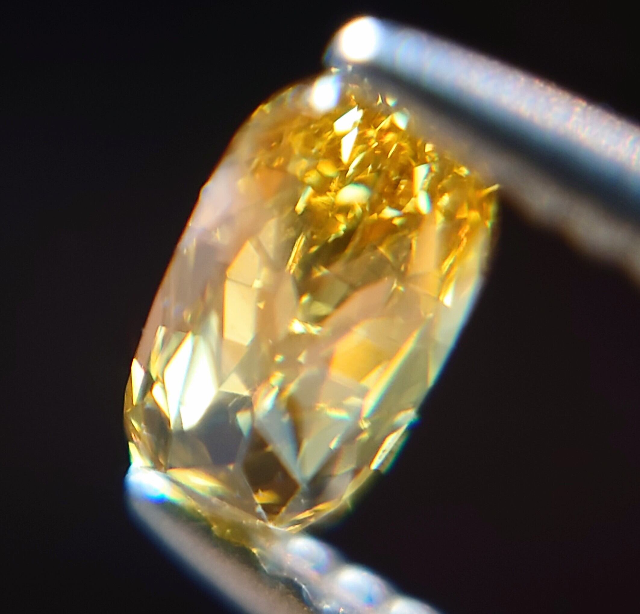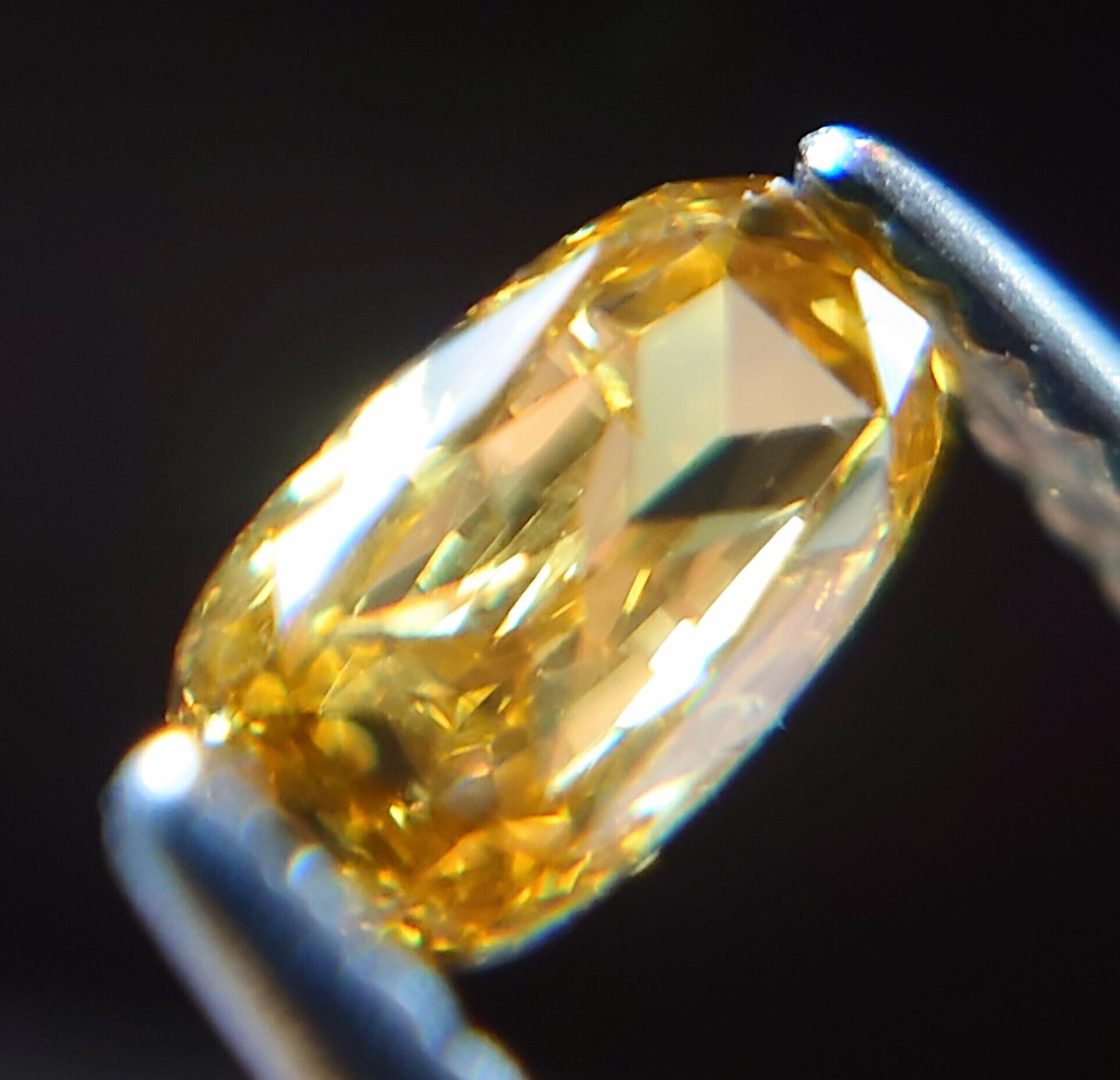 ブラウニッシュイエローですが、ブラウンとイエローが相まって光源によって、オレンジ調にも感じるダイヤモンドです♪
