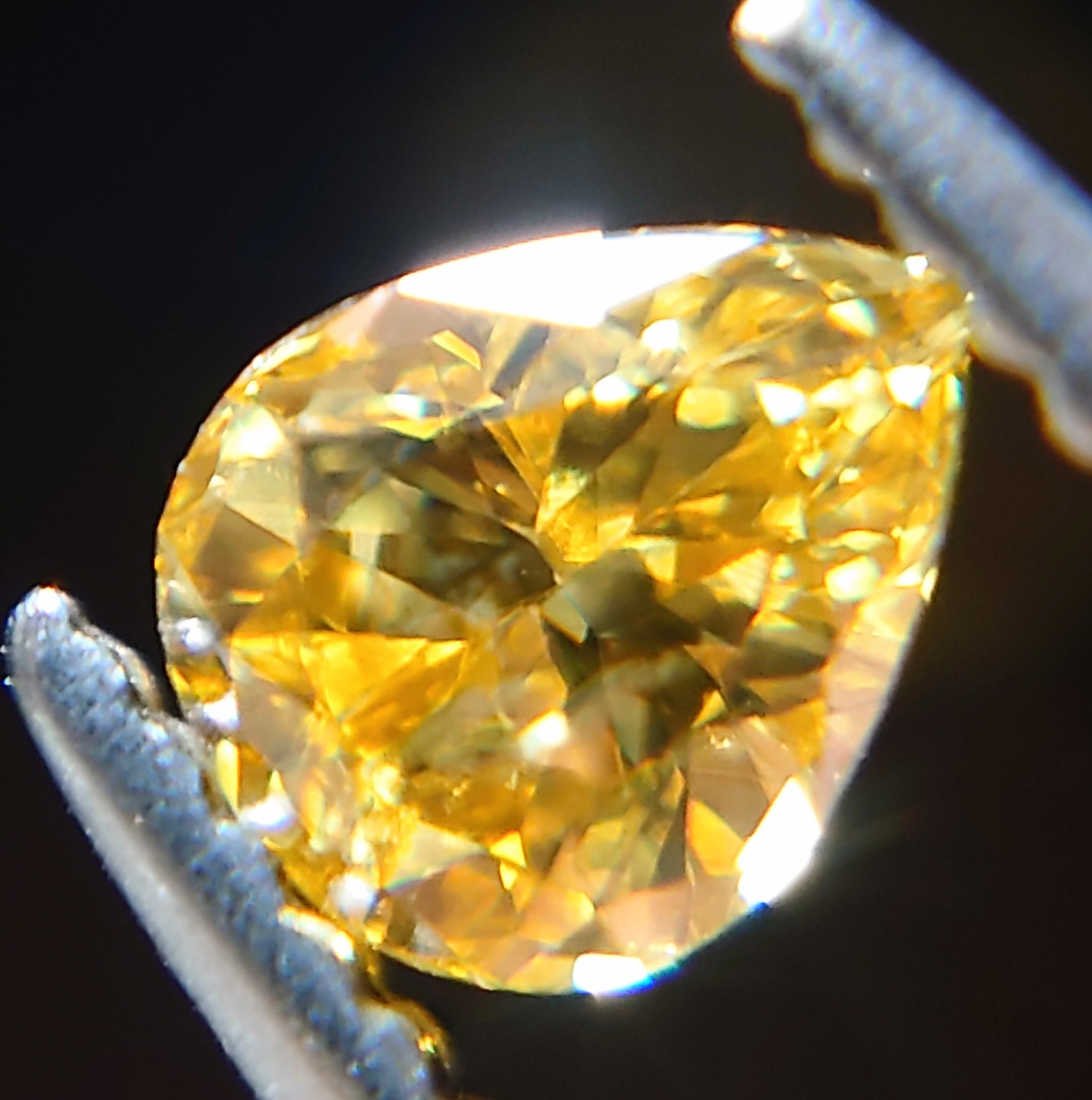 ブラウニッシュイエローですが、ブラウンとイエローが相まって光源によって、オレンジ調にも感じるダイヤモンドです♪