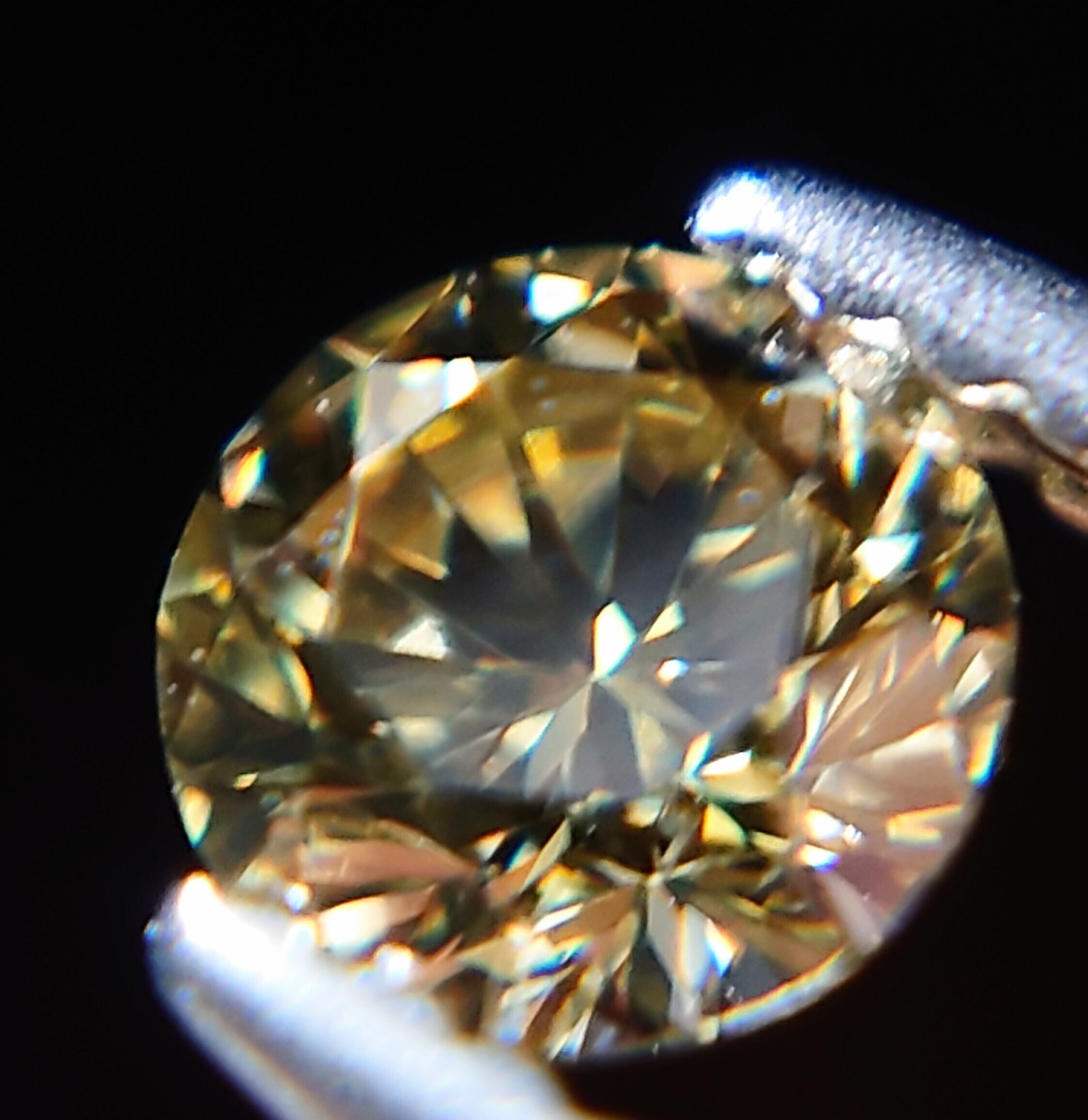 ブラウニッシュとイエローが相まって、光源によってはグリーンも感じる様なダイヤモンド♪