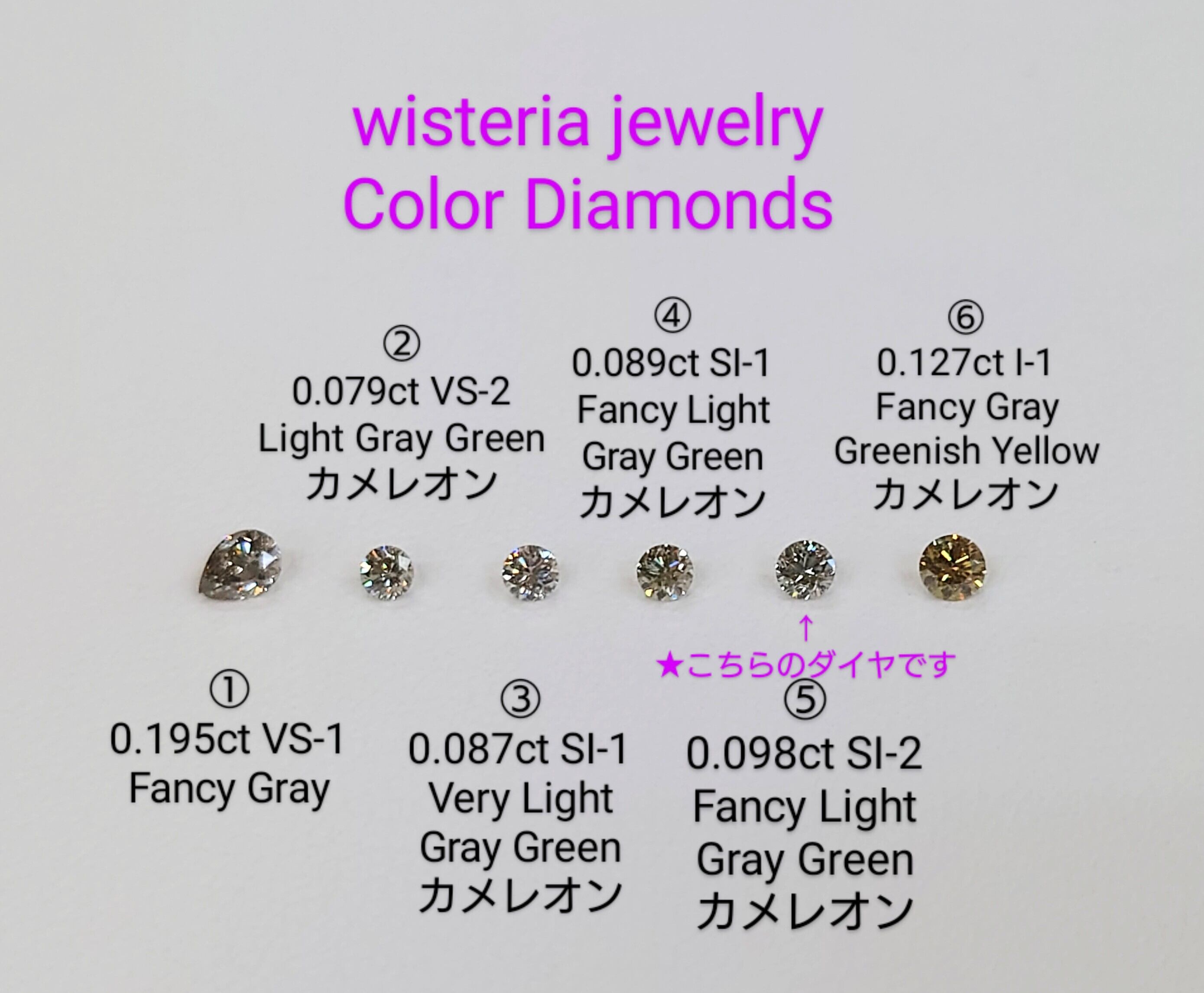 グレーとグリーンが相まったグリーンダイヤモンドは何とも表現し難いカラーで、光源によって様々な表情を表します♪