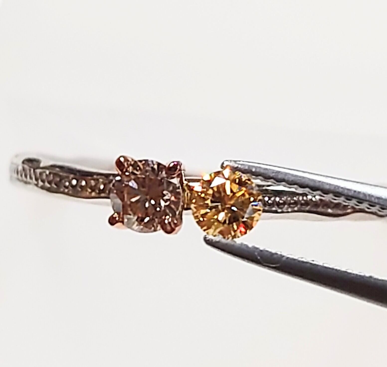 オレンジイエローはパステル調の優しいオレンジ感で、とても可愛らしいイエローダイヤモンドです♪