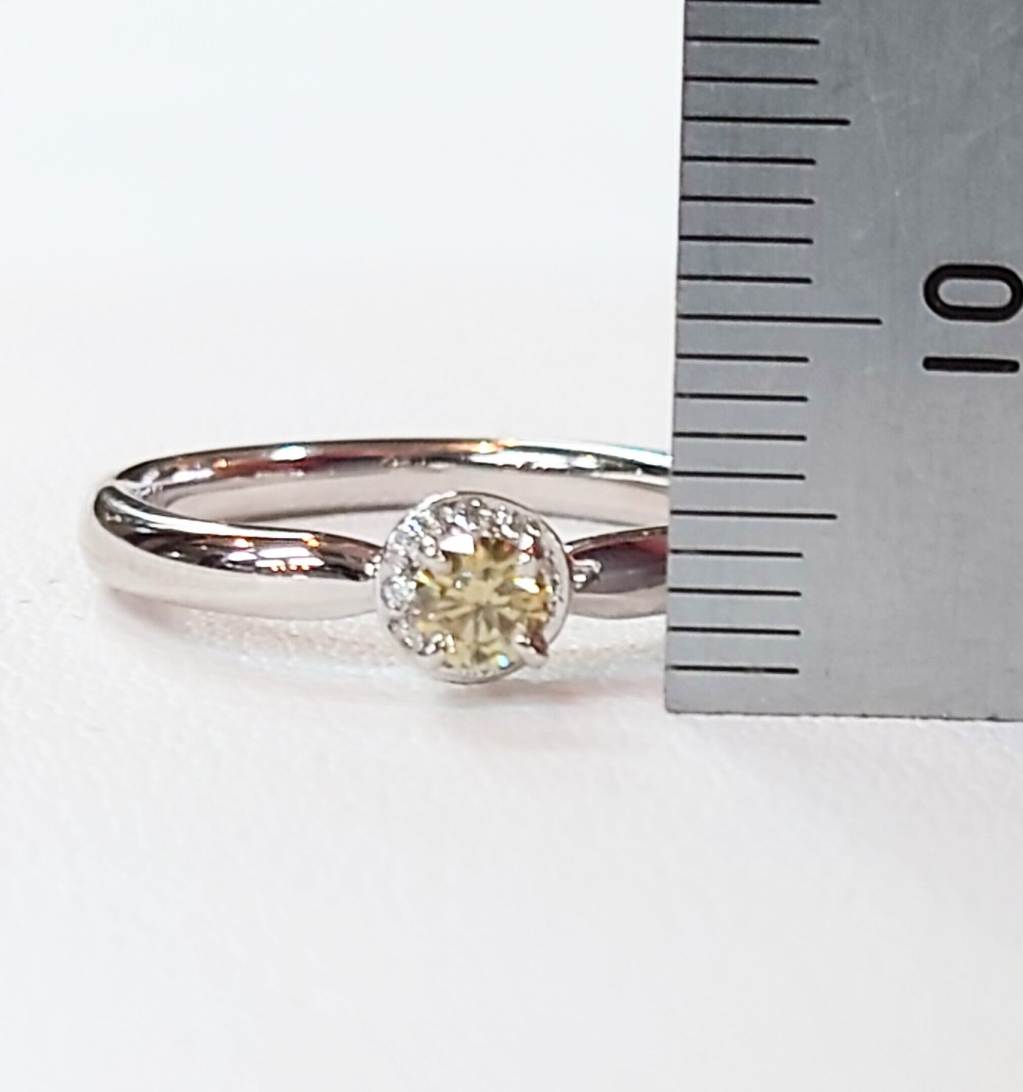 ブラウンとグリーンが相まったイエローダイヤモンドは何とも表現し難いカラーで、光源によって様々な表情を表します♪