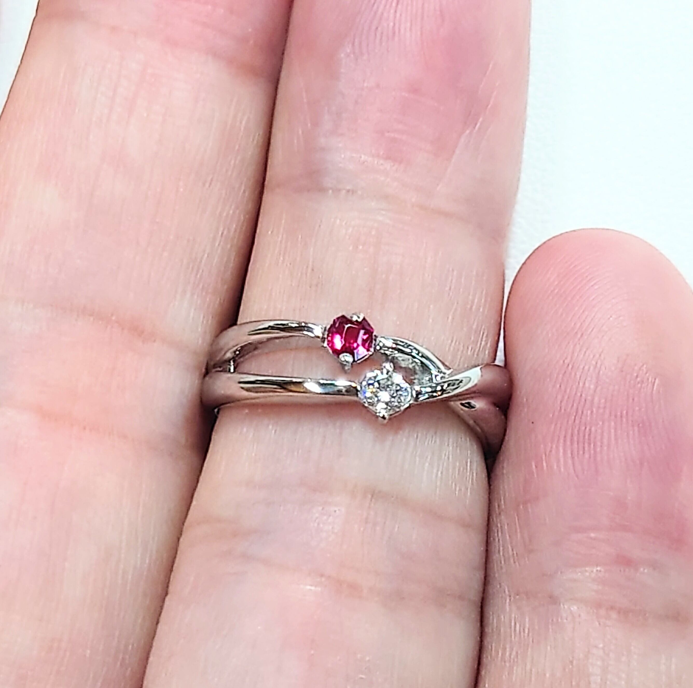 希少 レッドベリル0.08ct & ダイヤ0.07ct Pt900リング☆