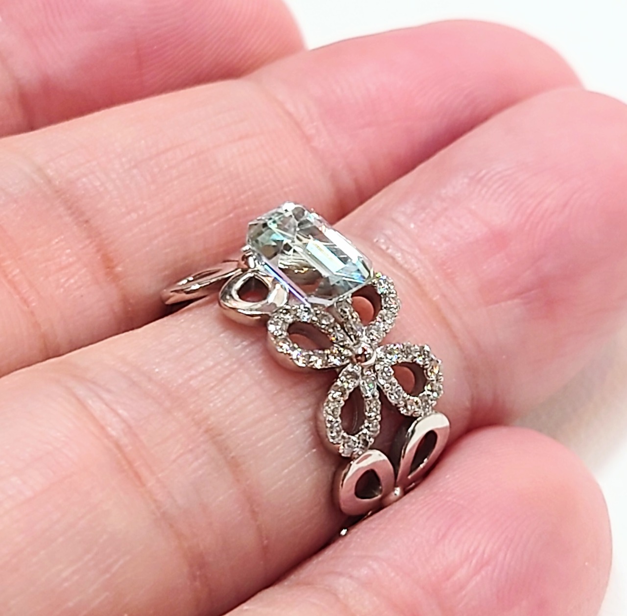 とてもクリアでブルーグリーンが迸り、ルーペで見てもインクルージョンの確認が困難なルース☆☆☆