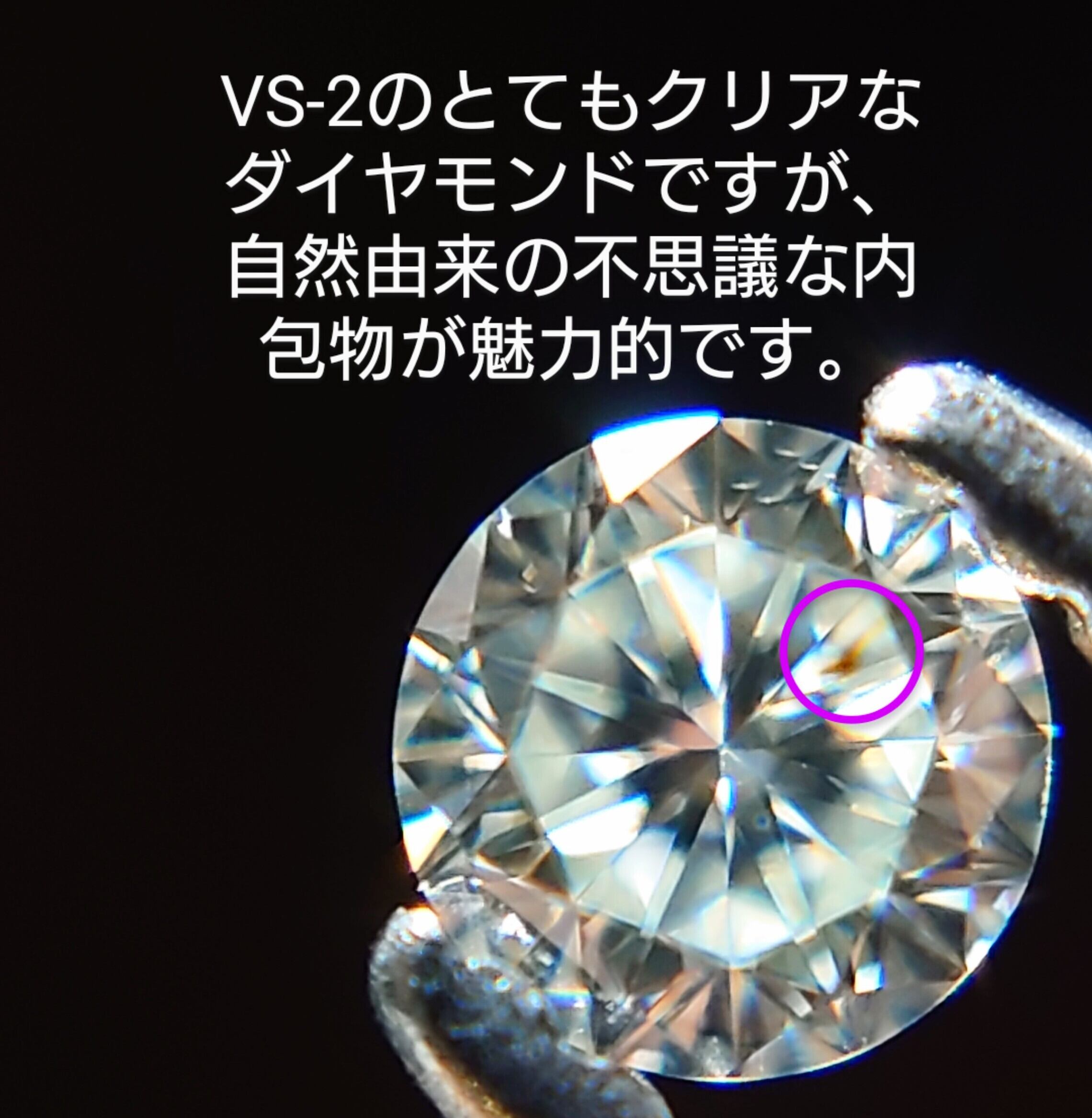 整ったラウンドブリリアントカットでよく輝き、クラリティはVS-2でとてもクリアなダイヤモンドです♪