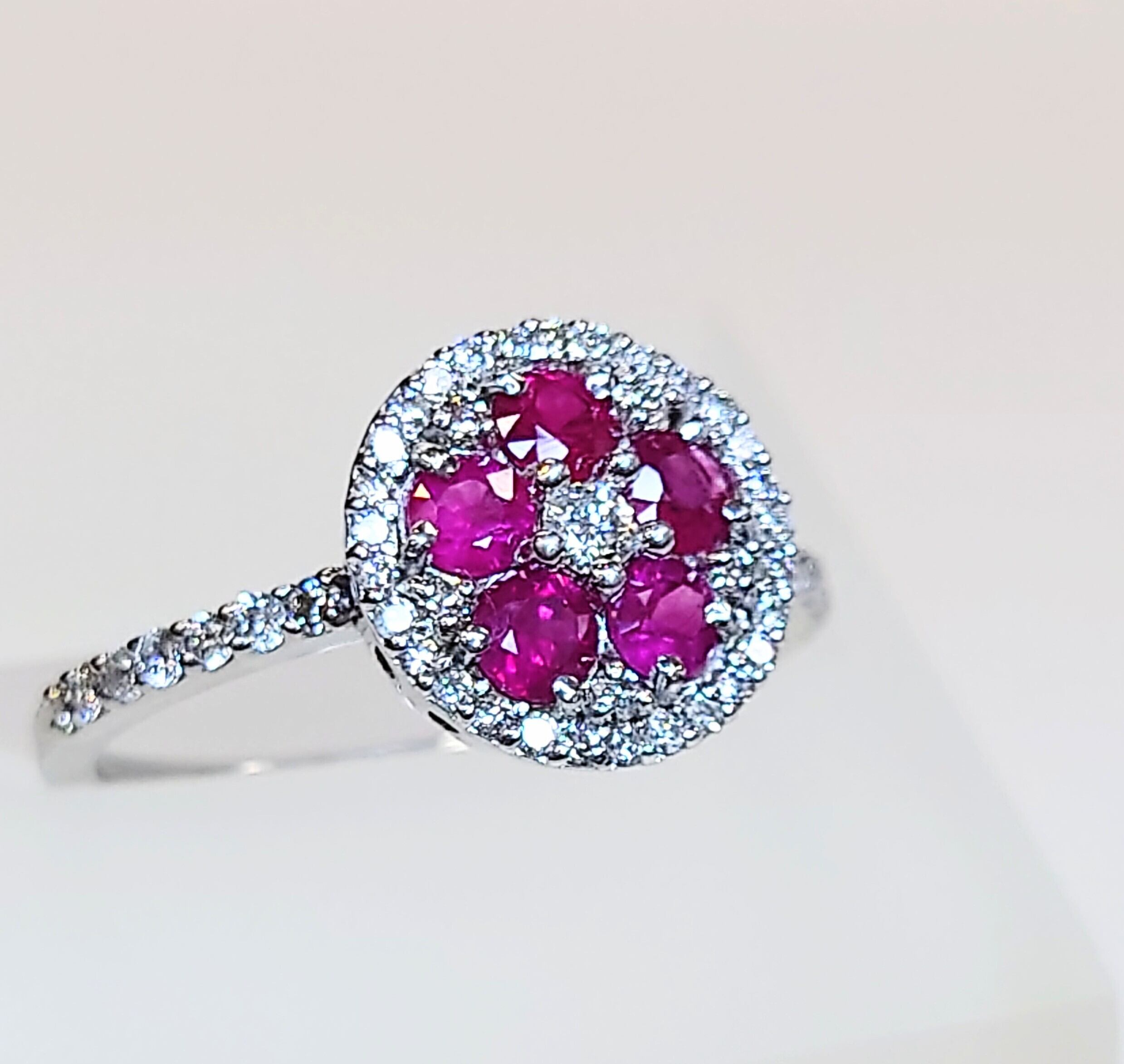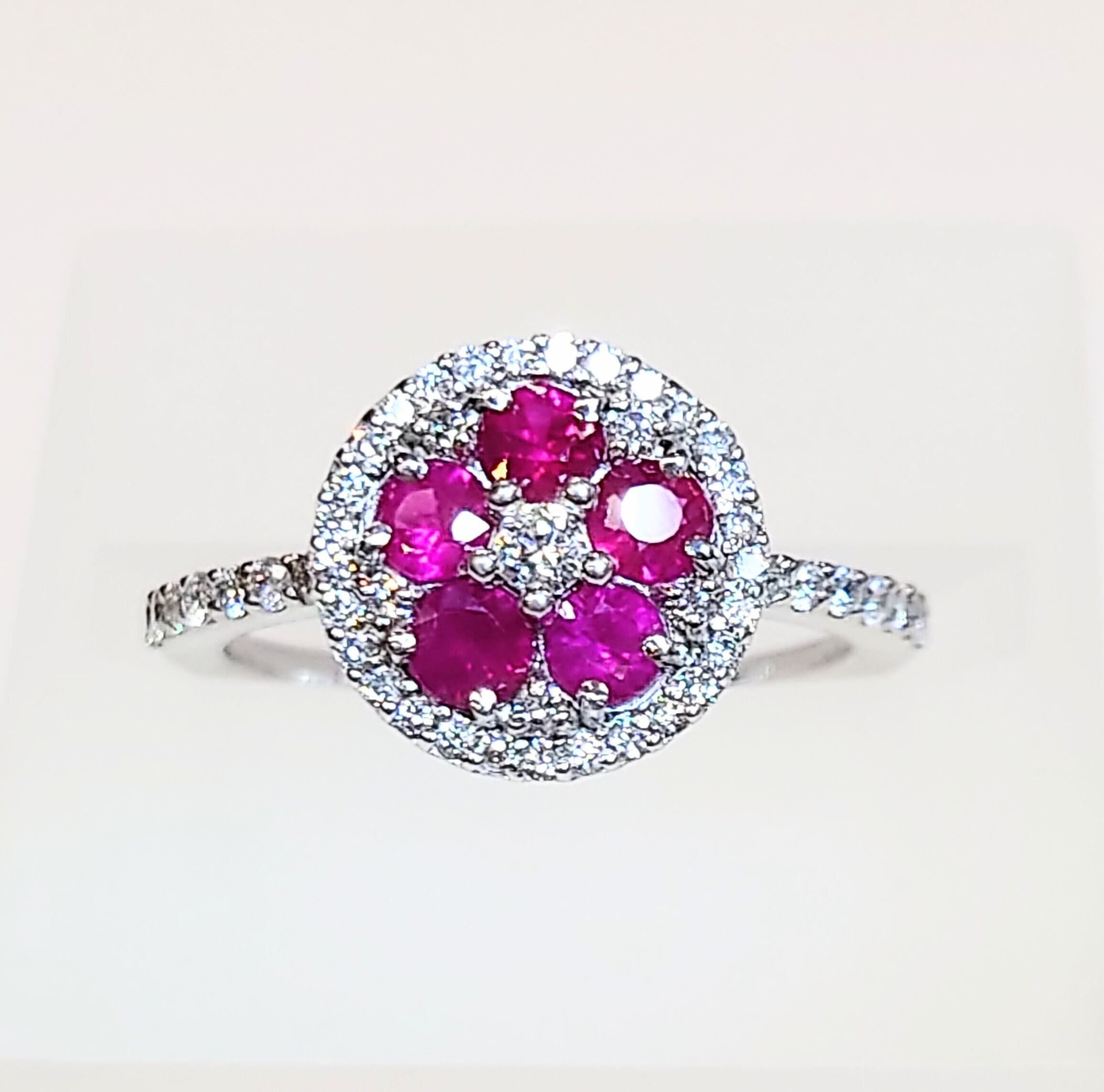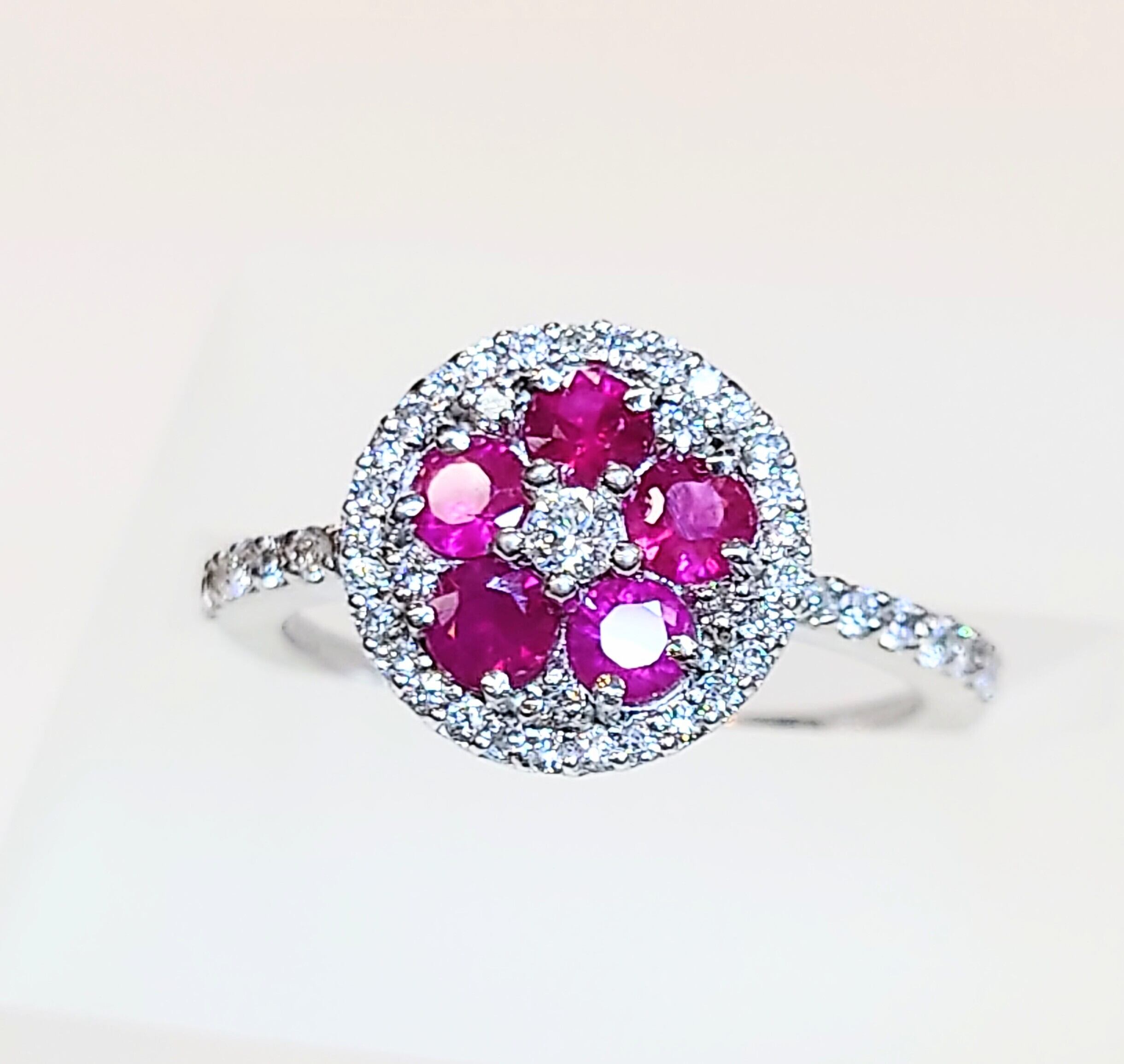丸みのあるデザインにフラワーモチーフに配置されたルビーが可愛らしいリング♪