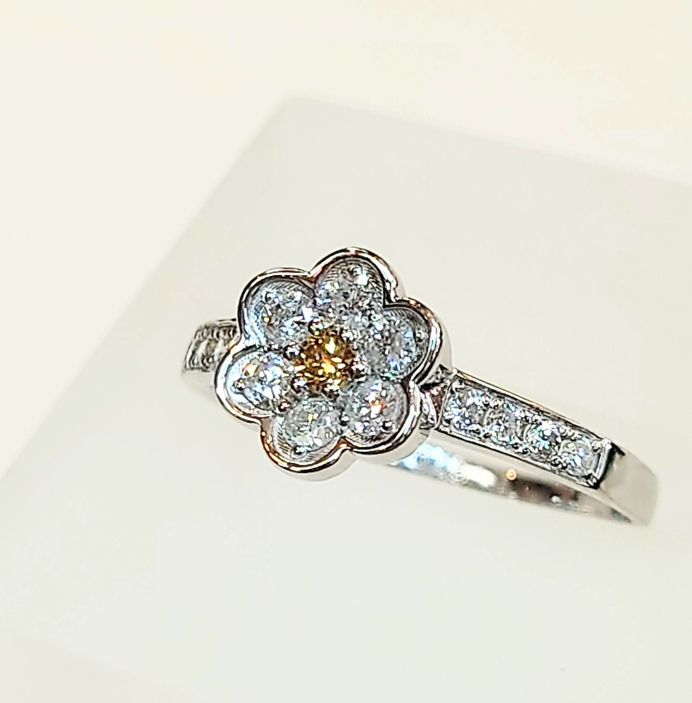イエローとカラーレスダイヤモンドのコントラストが、可愛らしいフラワーのシルエットをより引き立てます♪