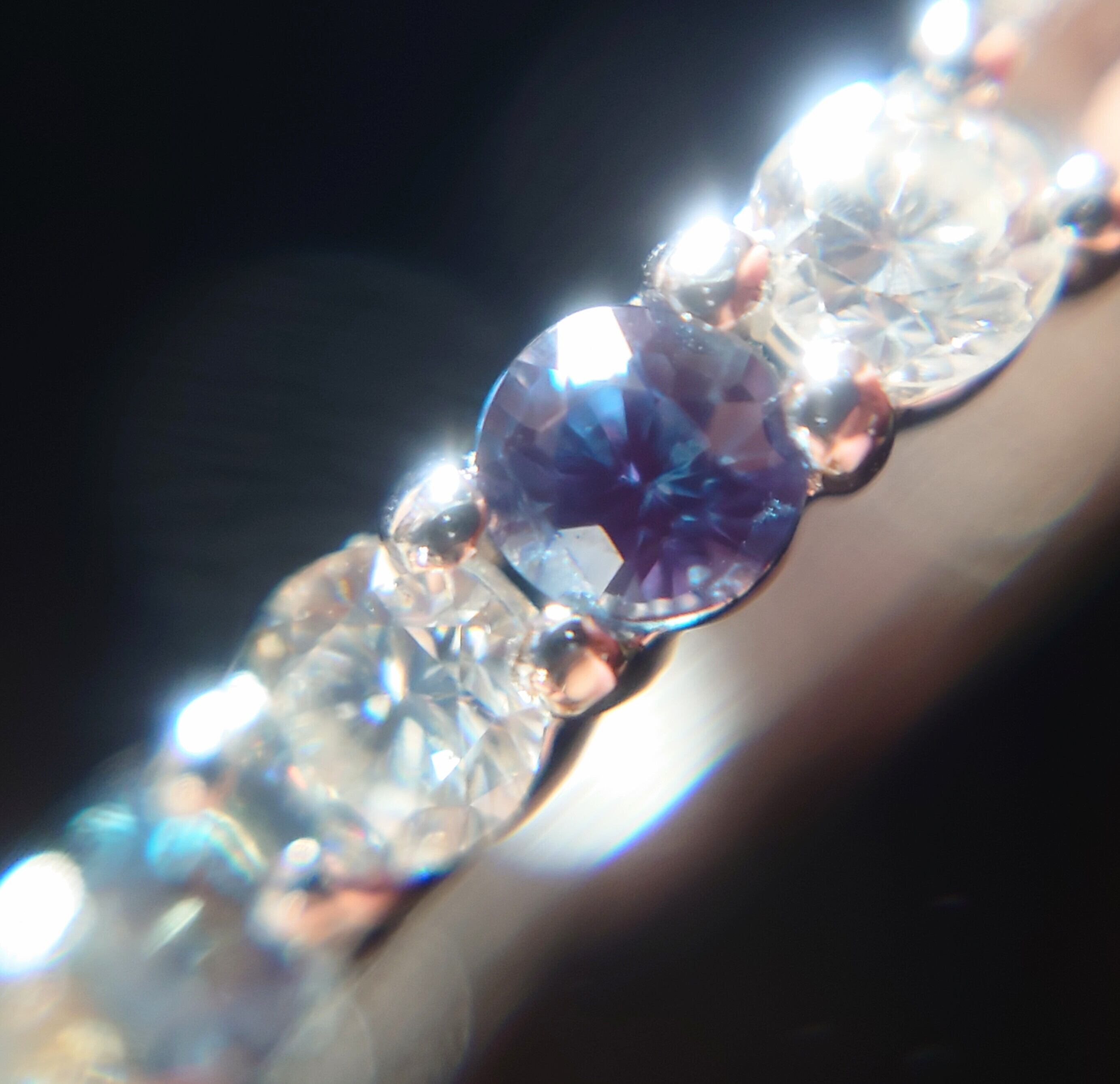 センターの両隣からはアレキサンドライトとカラーレスのダイヤモンドを交互にセッティング♪