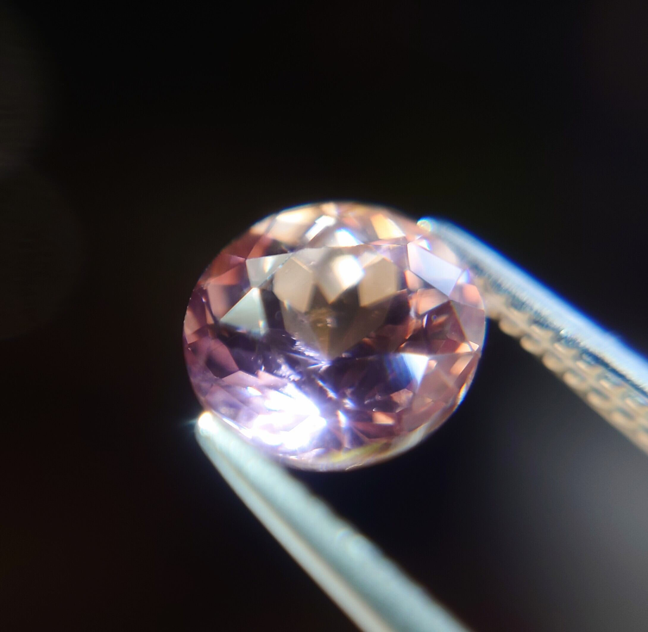 太陽光では薄い紫、蛍光灯(青白い光)では薄いピンク、白熱灯(黄色い光)で赤、UVライトも波長の違いによってその見た目を大きく変える不思議なガーネット♪