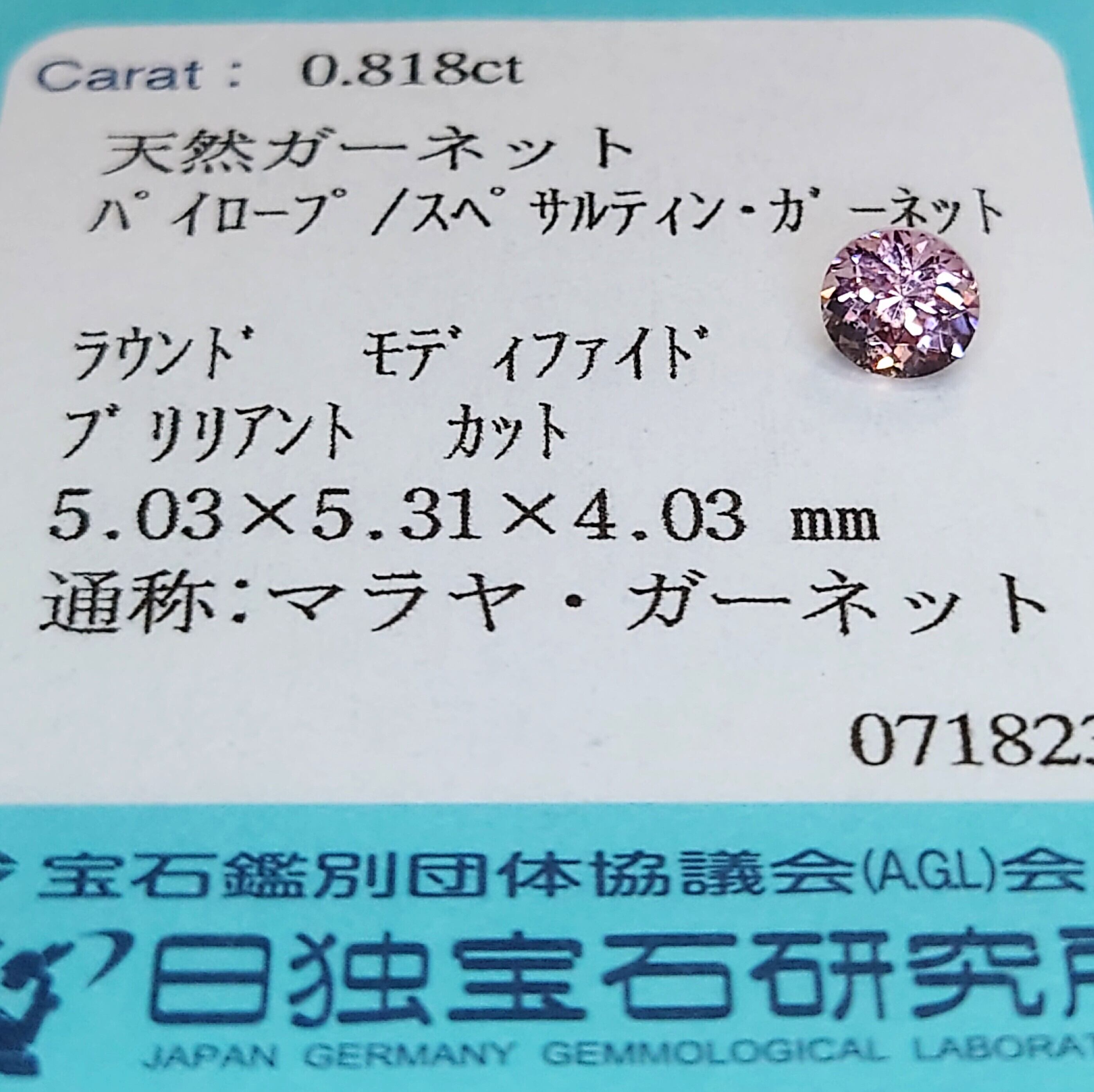 Malaya Garnet (Dragon Garnet) 0.818ct 日独成分分析済ソ付 ルース☆