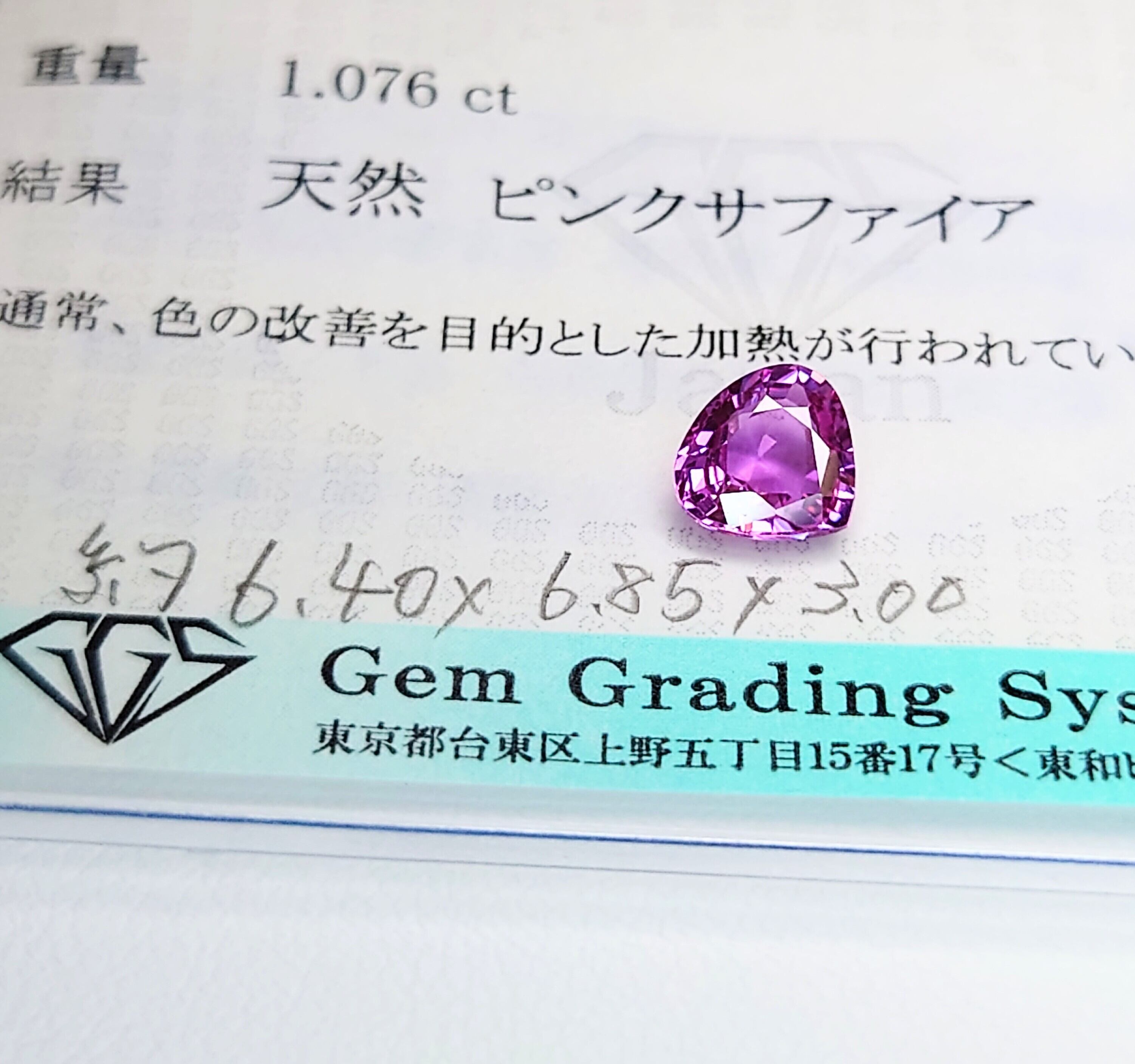 Pink Sapphire 1.076ct ソ付 ルース☆