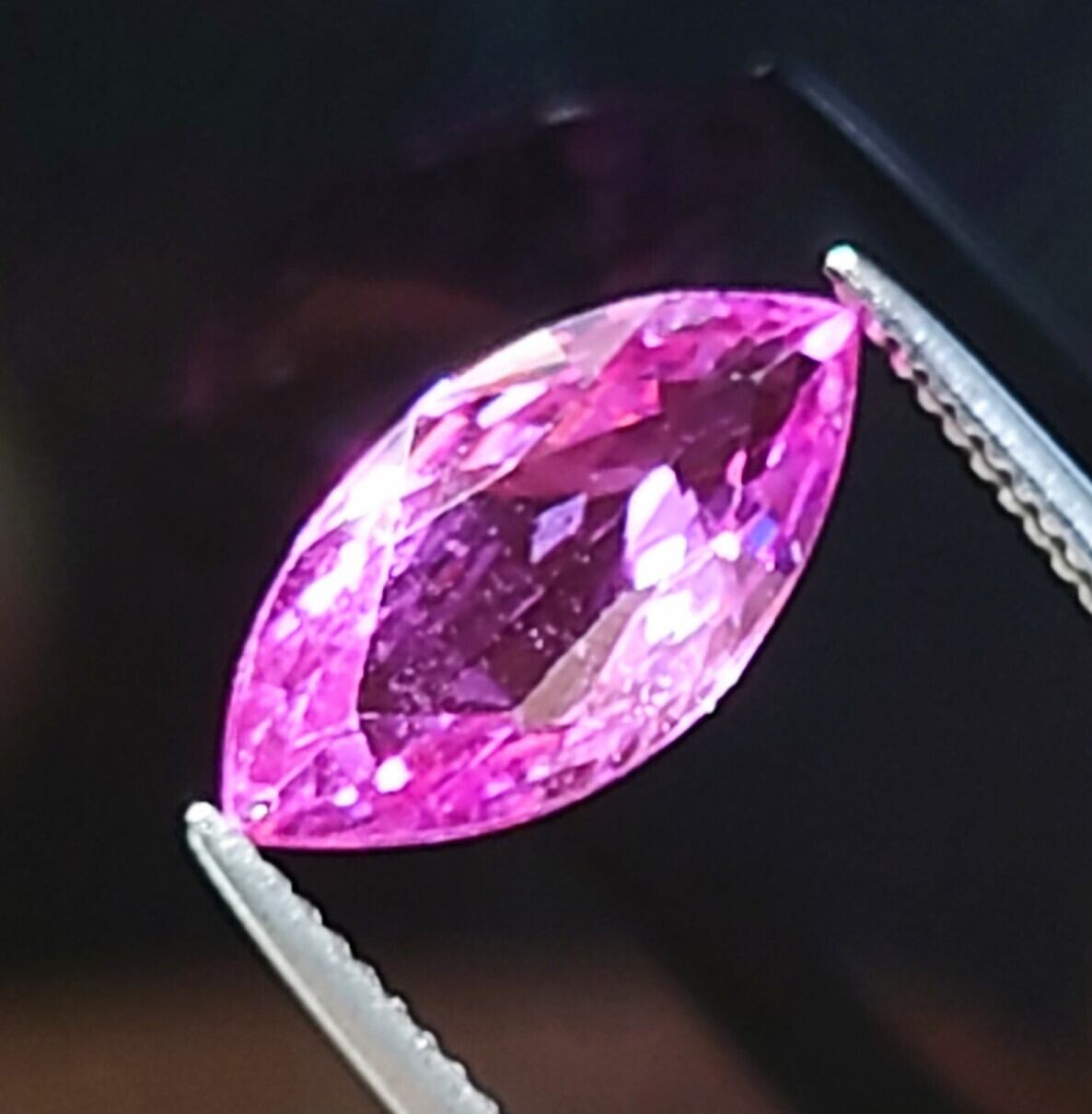 クロムの含有によってピンク色に発色しているサファイアなので、勿論蛍光もします♪