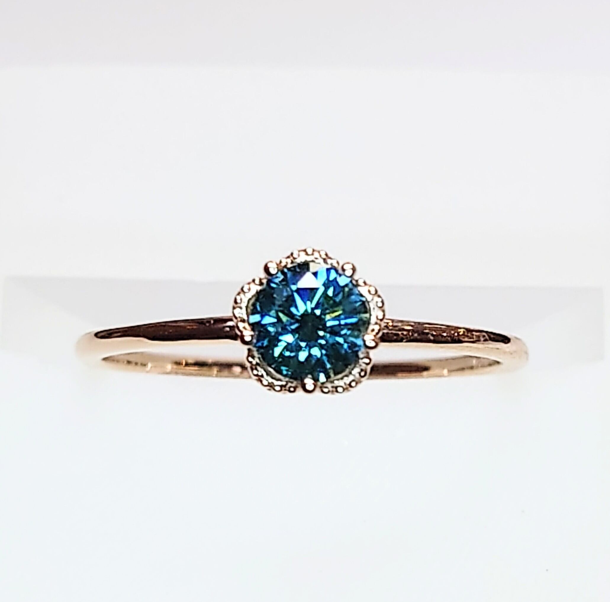 K18ピンクゴールド製の枠に留められた『ブルーダイヤモンド』は色も大きさも存在感の強い0.36ct♪