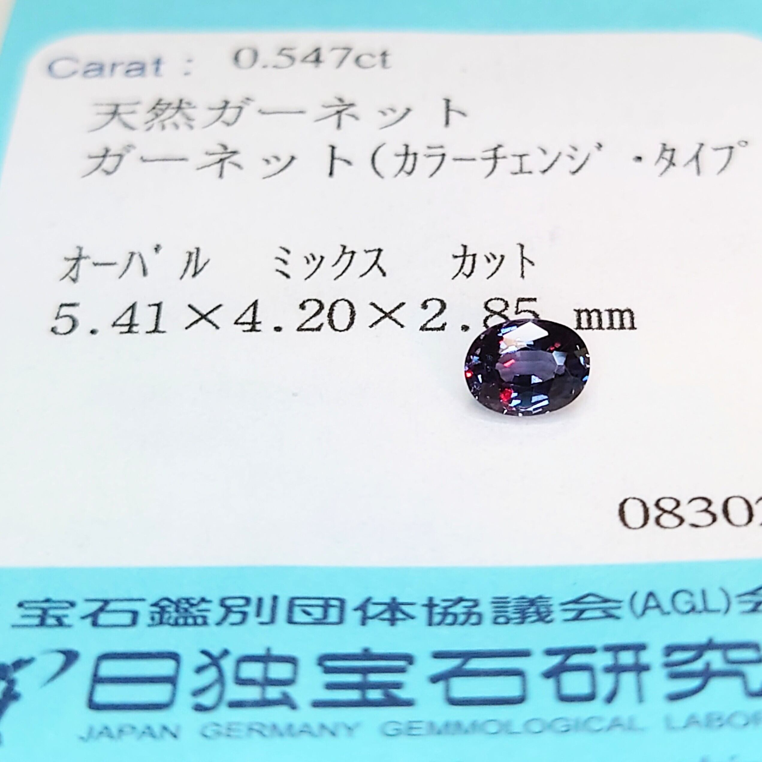 Bekily Blue Garnet color change type 0.547ct 日独ソ付 ルース