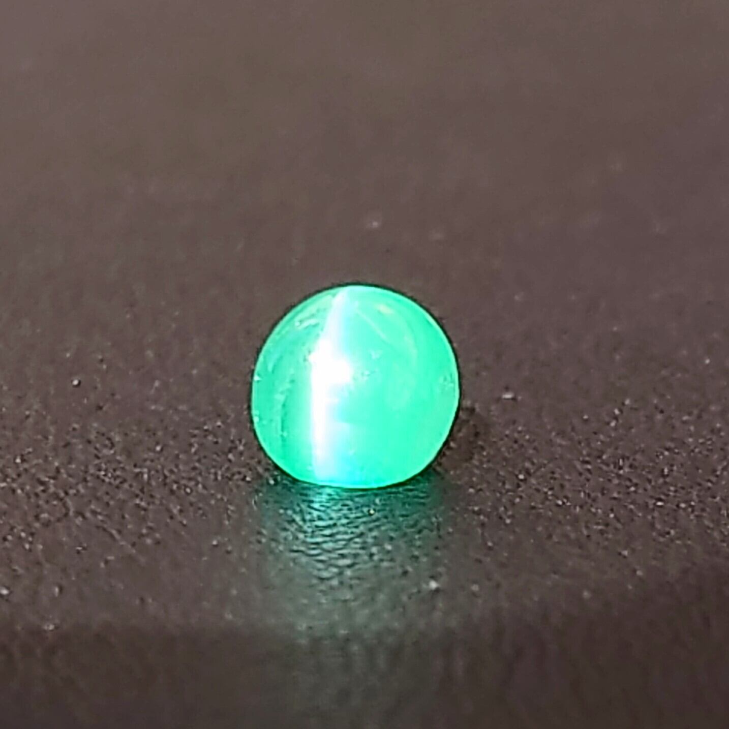 このキャッツアイは、エメラルドの中に含むチューブ状インクルージョンが規則的に 入るこむことで、光を受けた結晶に猫の目の様なキャッツアイ効果をご覧頂くことが出来ます♪