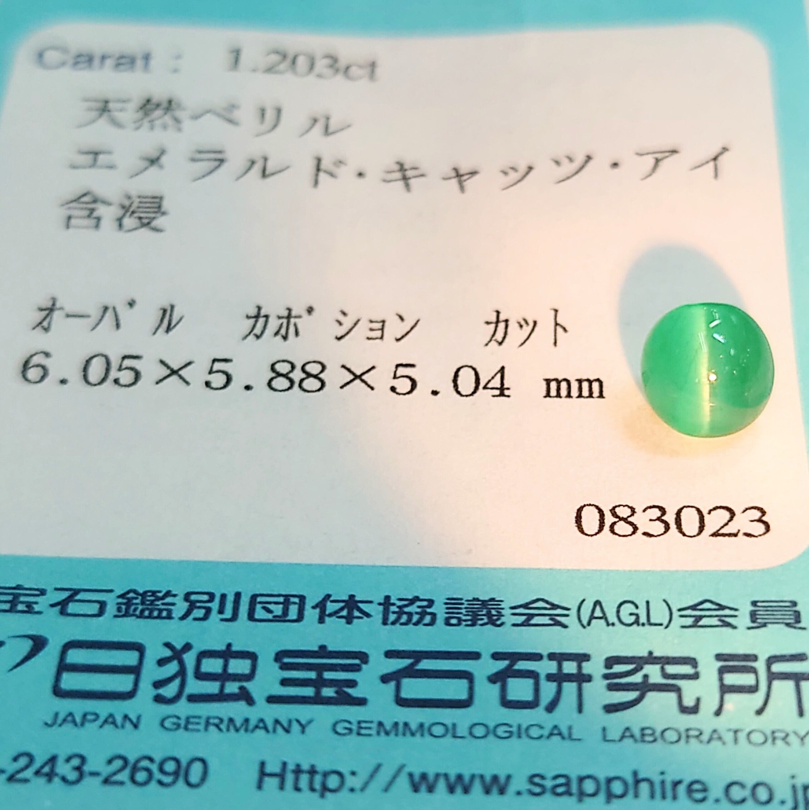 希少 高品質 Emerald cat's-eye 1.203ct 日独ソ付 ルース☆