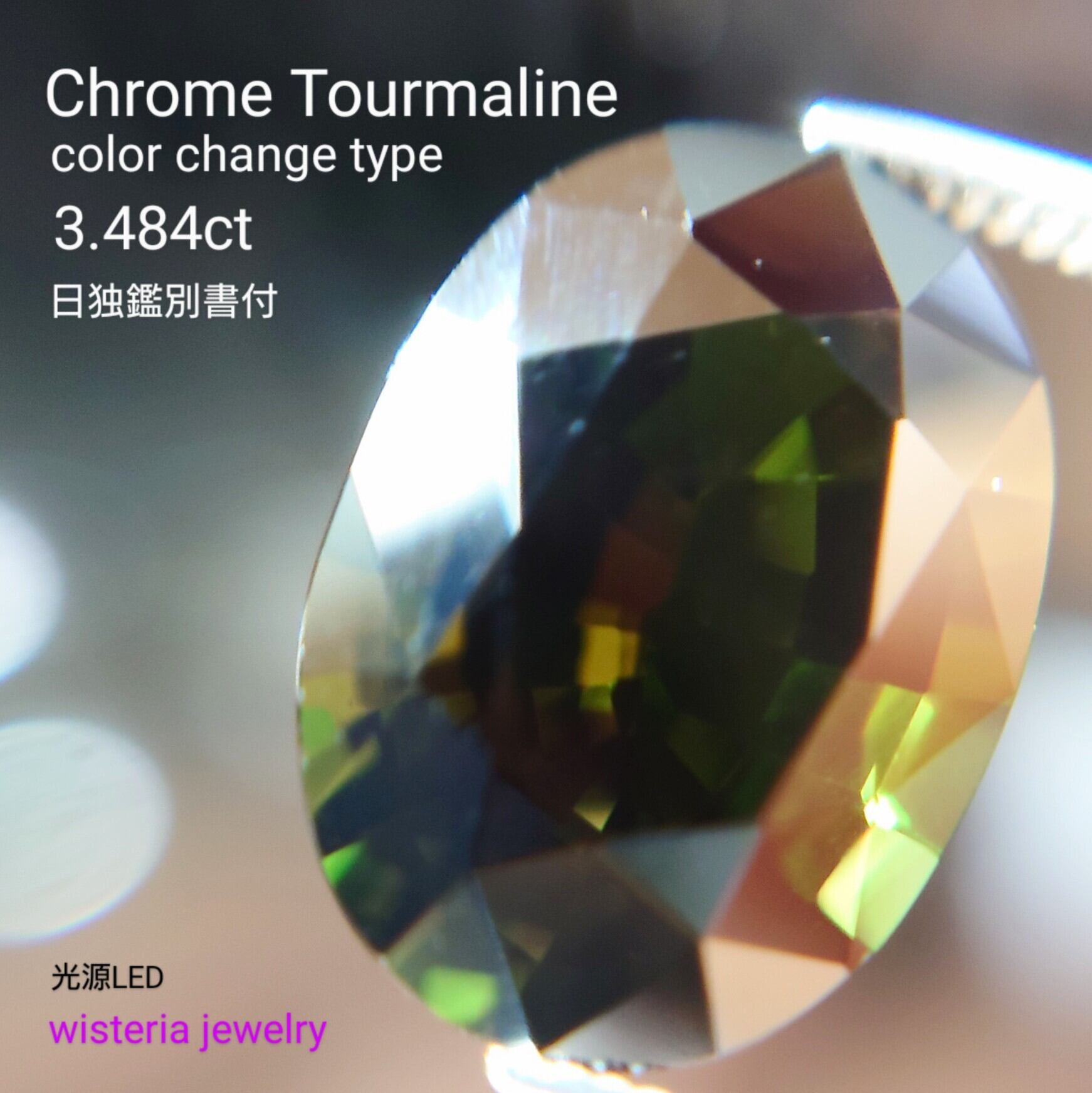 希少 Chrome Tourmaline color change type 3.484ct 日独鑑別書付 ルース☆
