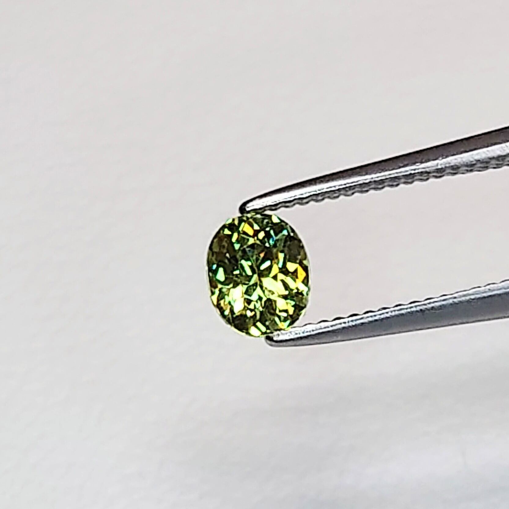 クリアで色輝りの良いパステルグリーンのデマントイドガーネットで、多色ファイヤがとても良く出る美しいデマントイドガーネットです♪