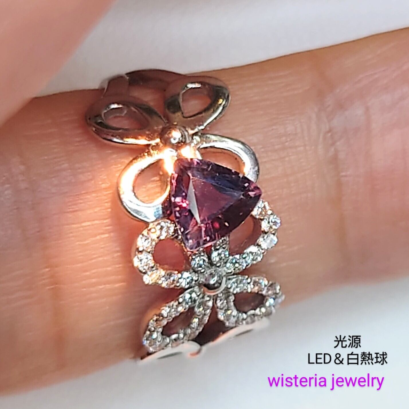 蛍光灯(寒色系の青白い光)下においてはバイオレットカラー、白熱灯(暖色系の黄色の光)下においては赤いファイアを呈するサファイアです♪