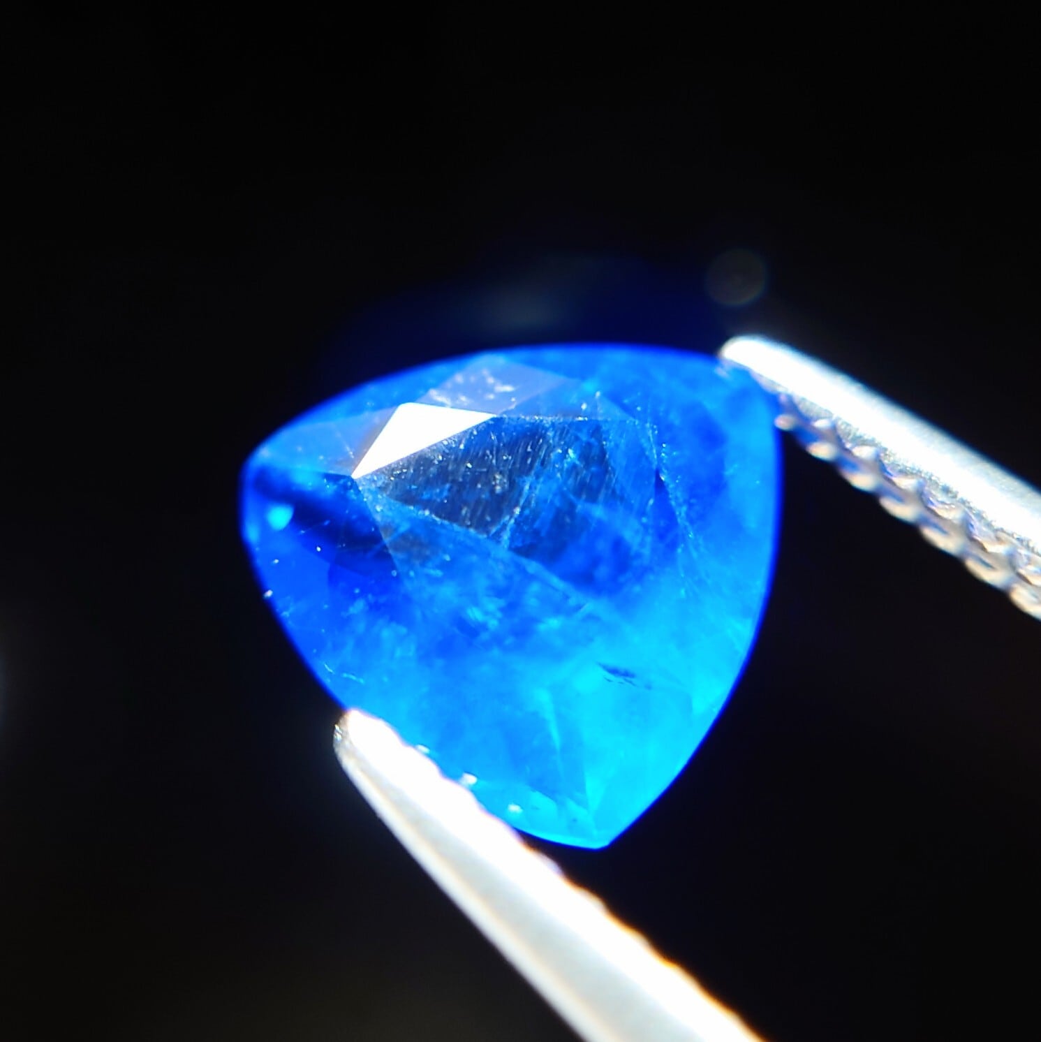 輝りのあるブルーがUVライトでオレンジに光る様は大変美しく、アウイナイトの魅力の一つとして挙げられます♪