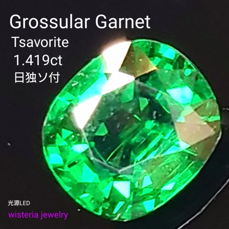 Green Grossular Garnet (Tsavorite) 1.419ct 日独ソ付 ルース☆