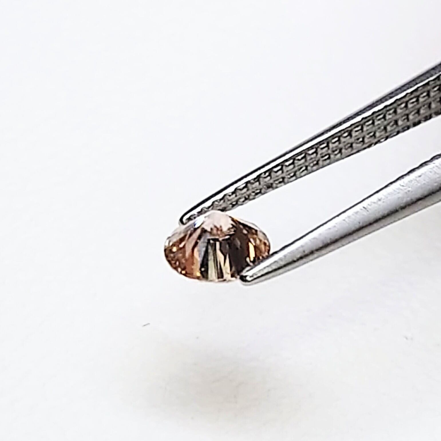 オレンジに近いブラウニッシュで、見た目はオレンジピンクのダイヤモンドと区別がつかないくらいの色味です♪