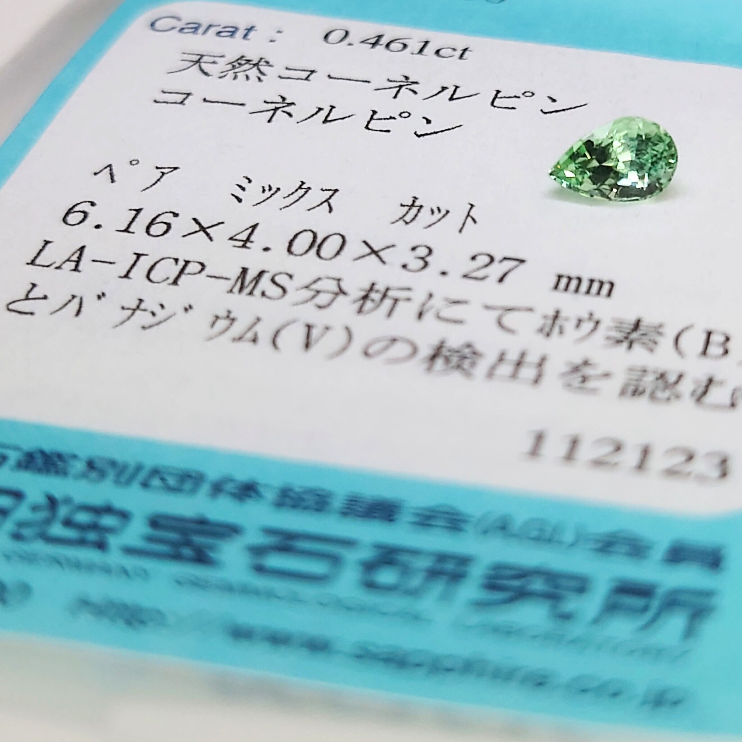 アップルグリーンやティールブルーを呈する美しい宝石で、ソーティングでは『コーネルピン』の表記で出ますが実は『プリズマティン』という別の名前も持っています♪