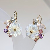 美しいシェルの花とパープル系の天然石ルースが耳元に華やかさをプラスしてくれるイヤーカフ♪