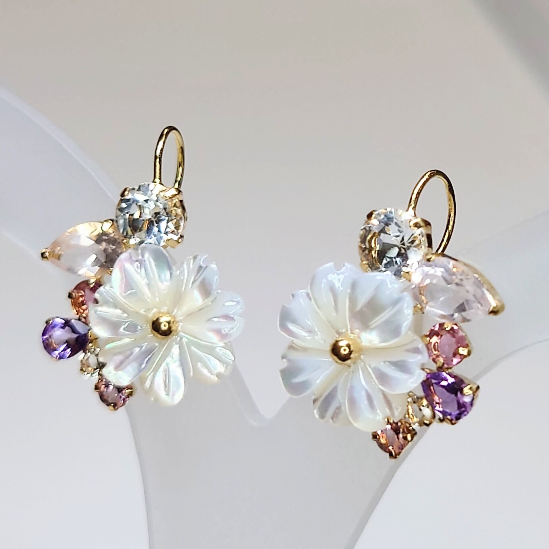 K18 イヤーカフ/ピアス White Topaz/Rose Quartz/Pink Tourmaline/Amethyst/Shell☆