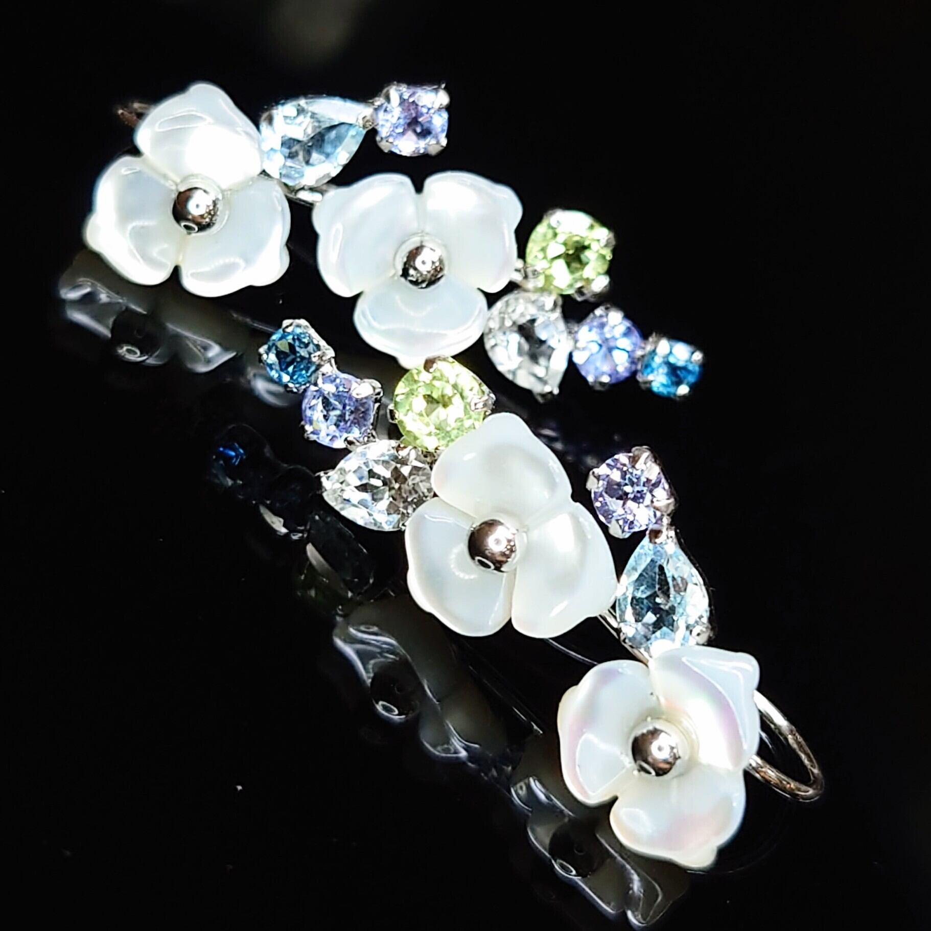 K14WGイヤーカフ/ピアス White Topaz/Blue Topaz/Peridot/Tanzanite☆