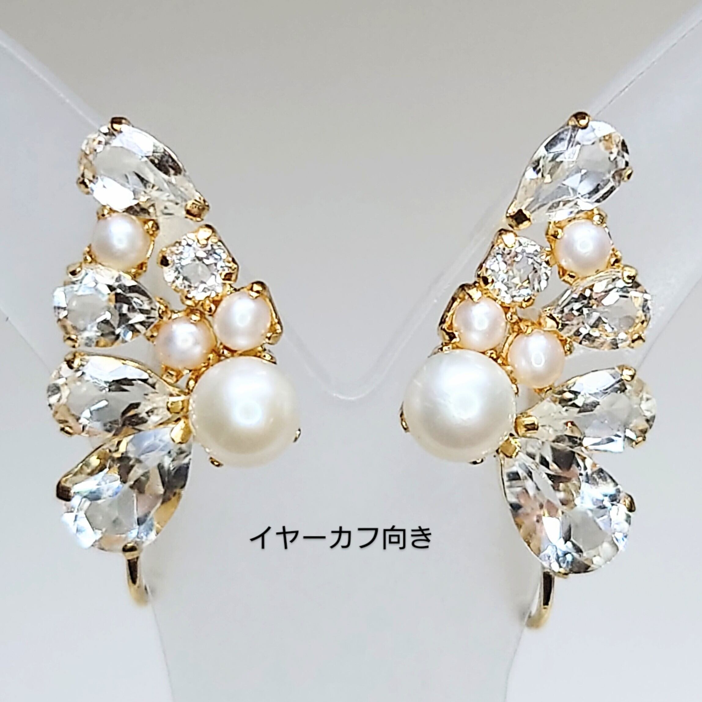 K18イヤーカフ/ピアスWhiteTopaz/Freshwater Pearl☆