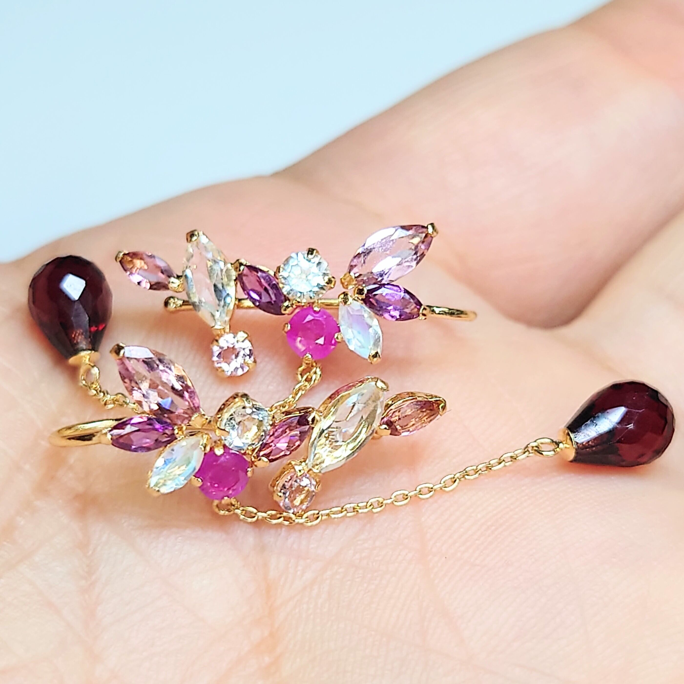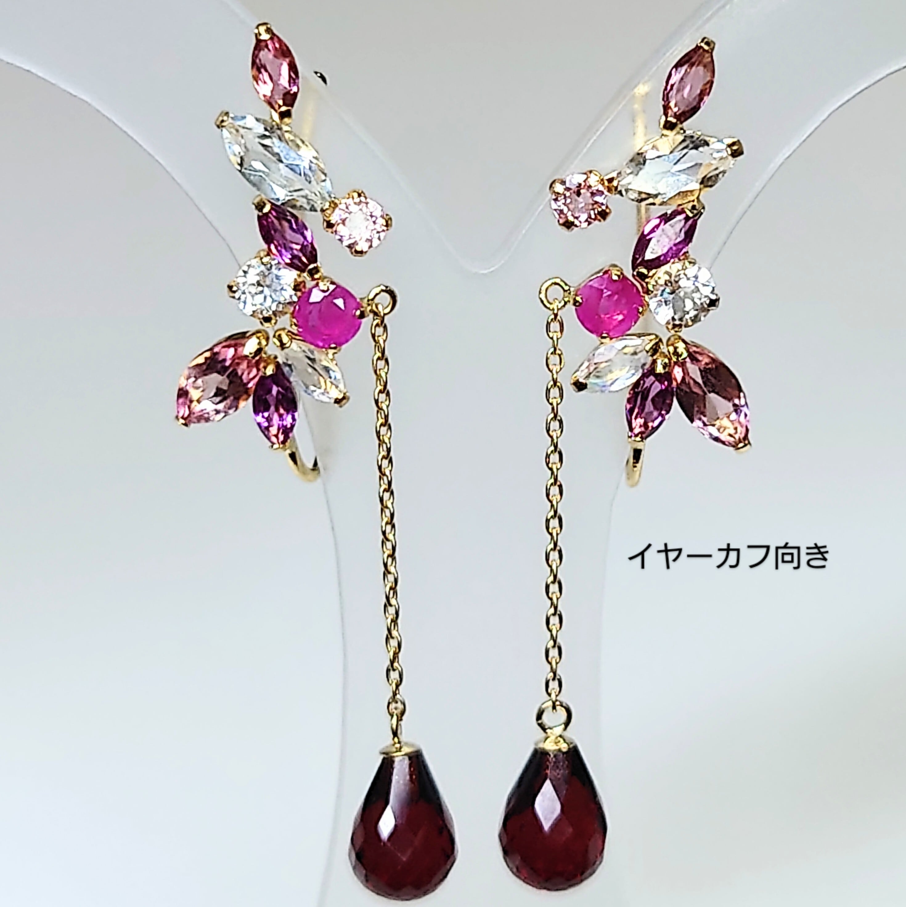 K18イヤーカフ/ピアス Ruby/Garnet/White Topaz/Pink Tourmaline/Blue Moonstone☆