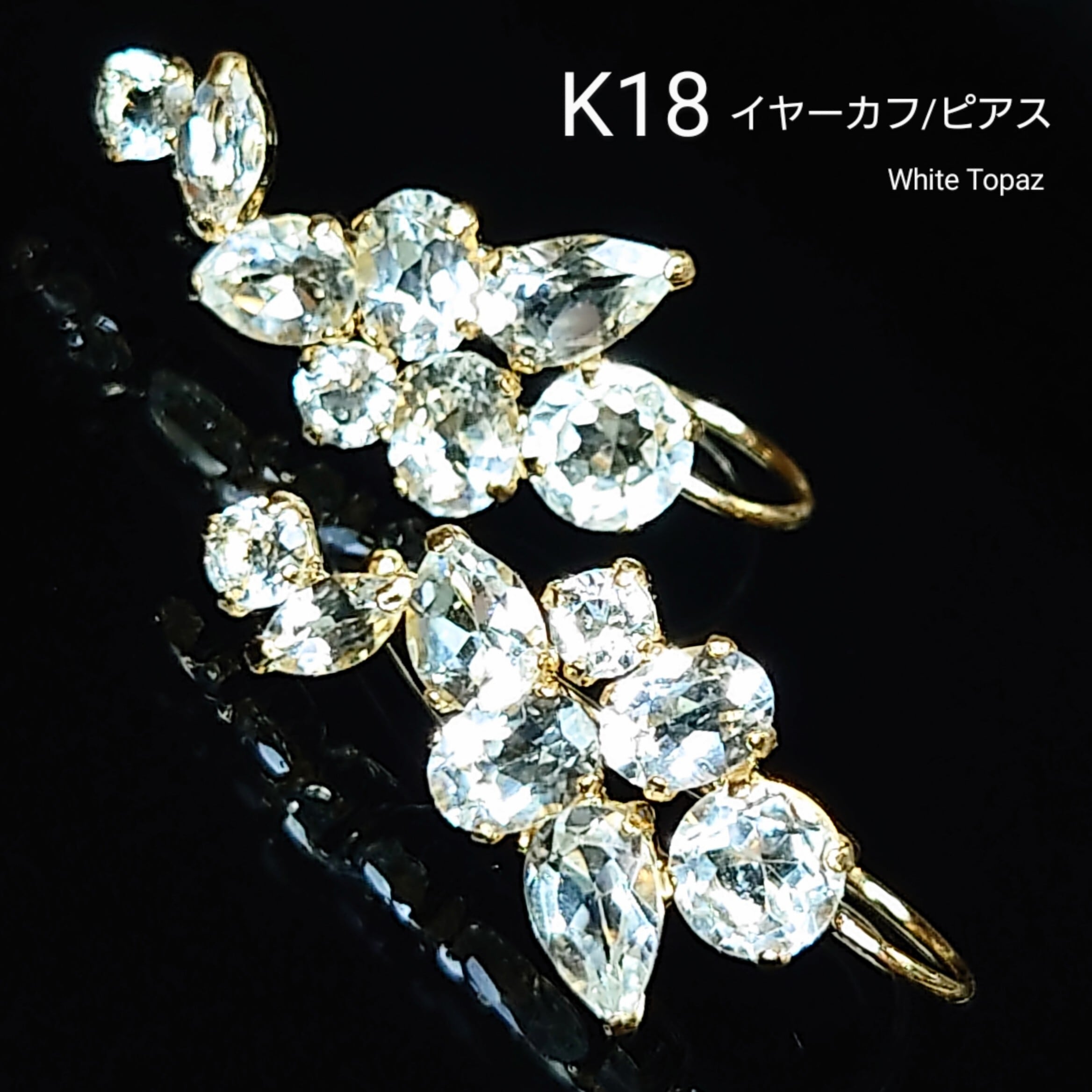 K18イヤーカフ/ピアス ホワイトトパーズ