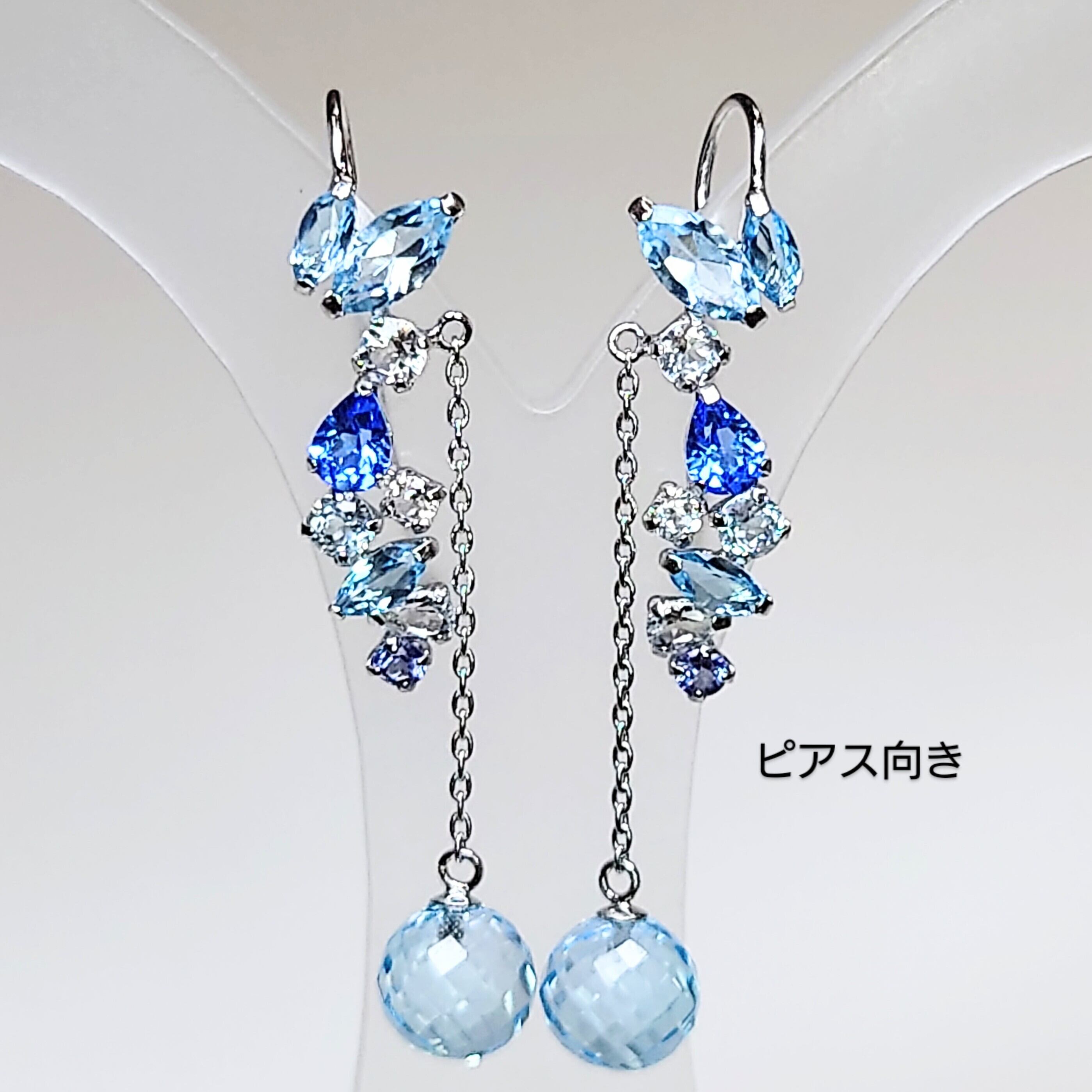 K14WGイヤーカフ/ピアス WhiteTopaz/BlueTopaz/BlueQuartz☆