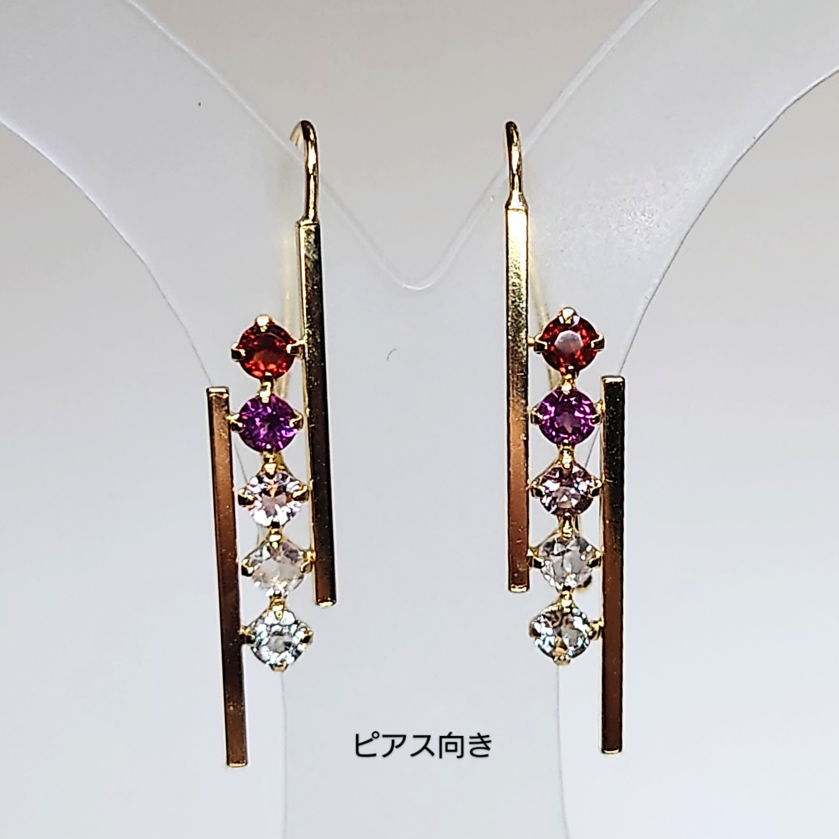 K18イヤーカフ/ピアス WhiteTopaz/RoseQuartz/PinkTourmaline/RhodoliteGarnet☆