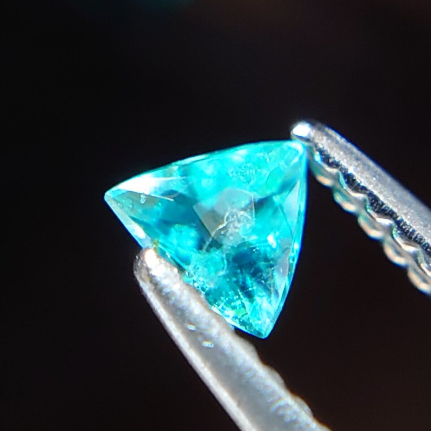 モディファイドトライアンギュラーブリリアントカットの輝りも美しく、ブラジル産特有の強いネオン感♪