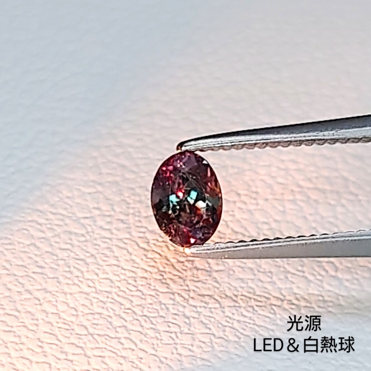 色変わりが抜群で、赤色の内包物によってLEDライトでも赤いファイアが出ます♪
