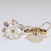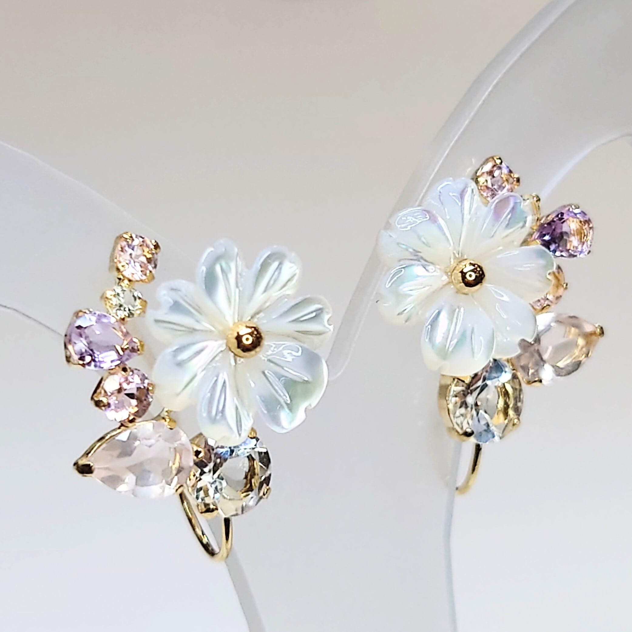 美しいシェルの花とパープル系の天然石ルースが耳元に華やかさをプラスしてくれるイヤーカフ♪