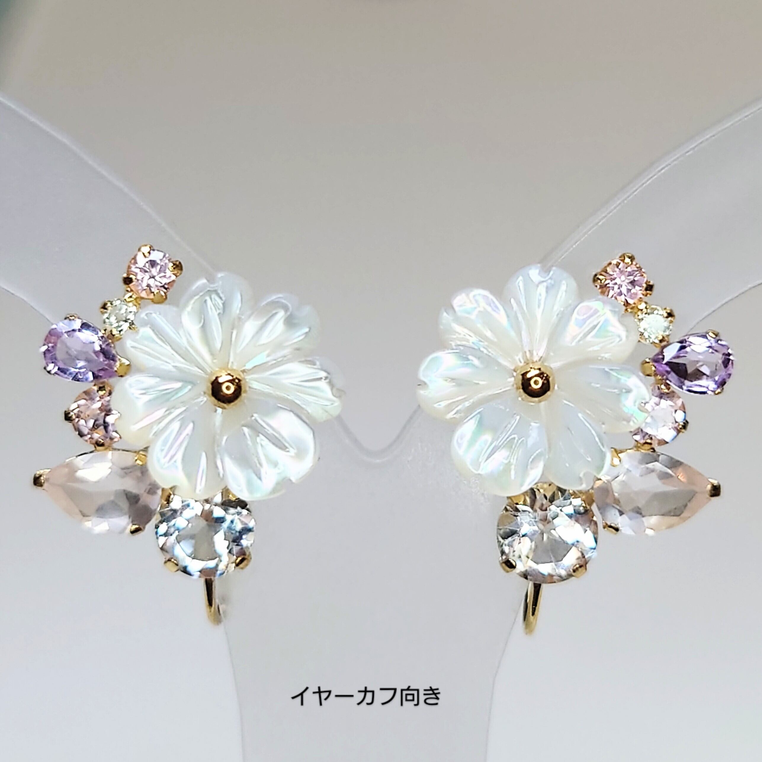 K18 イヤーカフ/ピアス WhiteTopaz/RoseQuartz/PinkTourmaline/LightAmethyst/Shell☆