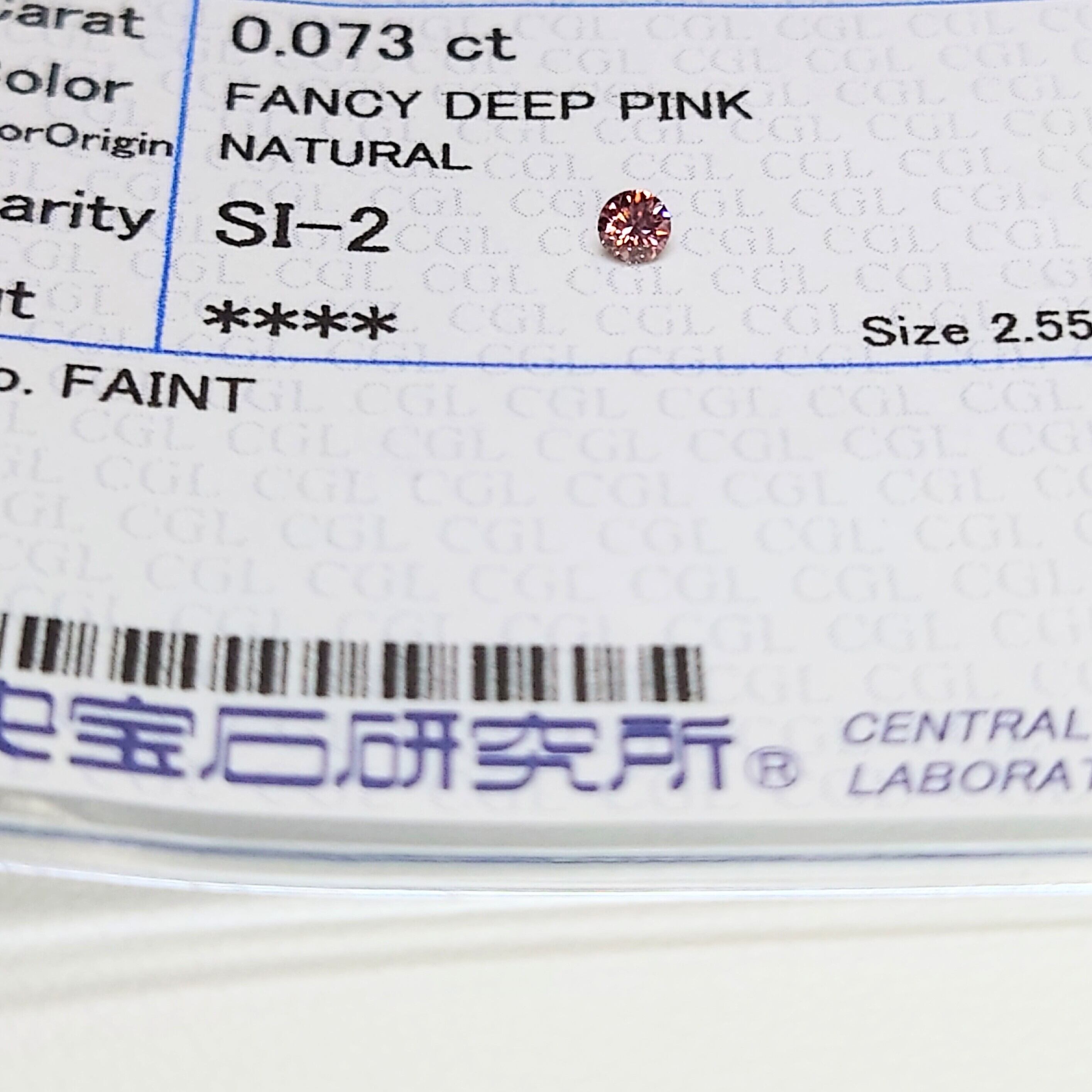 Fancy Deep Pink 0.073ct SI-2 CGL 天然ピンクダイヤモンドルース☆
